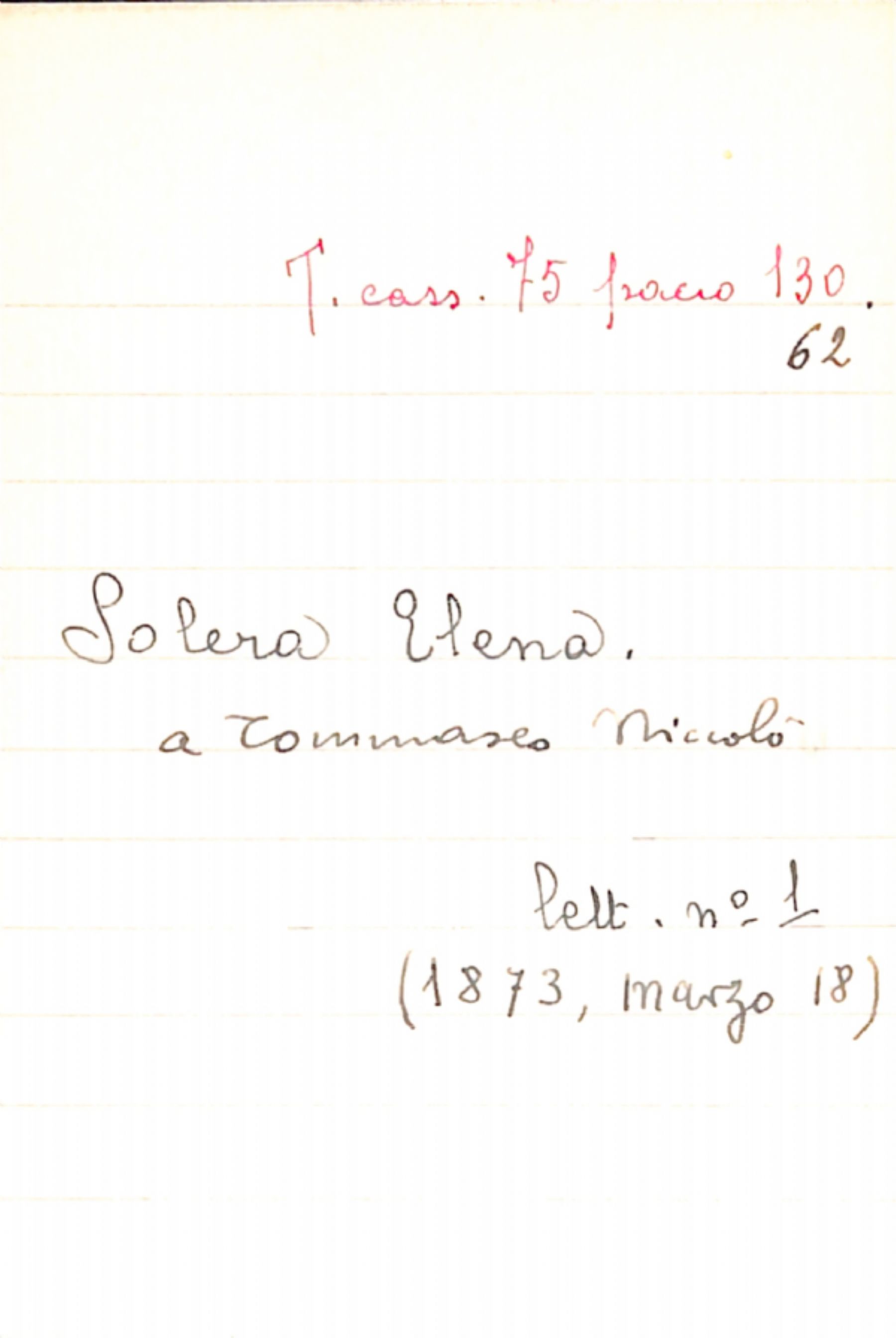 Fascicolo Solera, Elena a Tommaseo, Niccolò