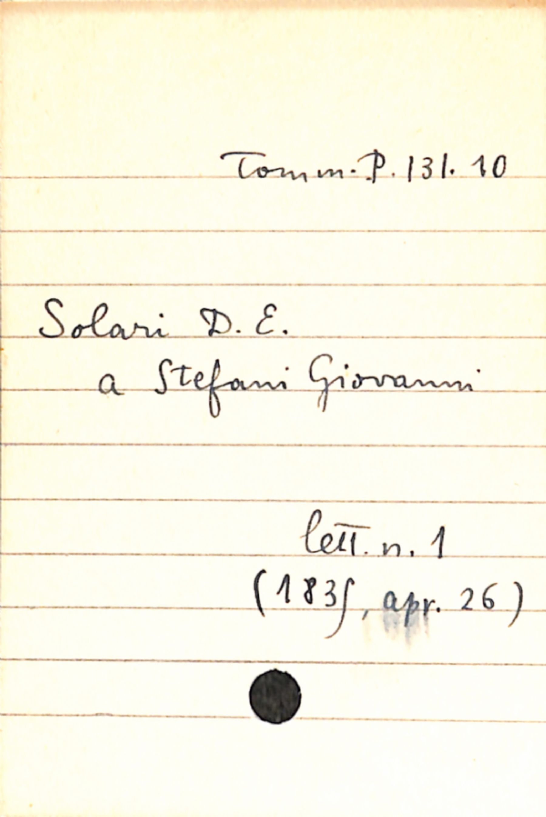Fascicolo Solari, D. E. a Stefani, Giovanni