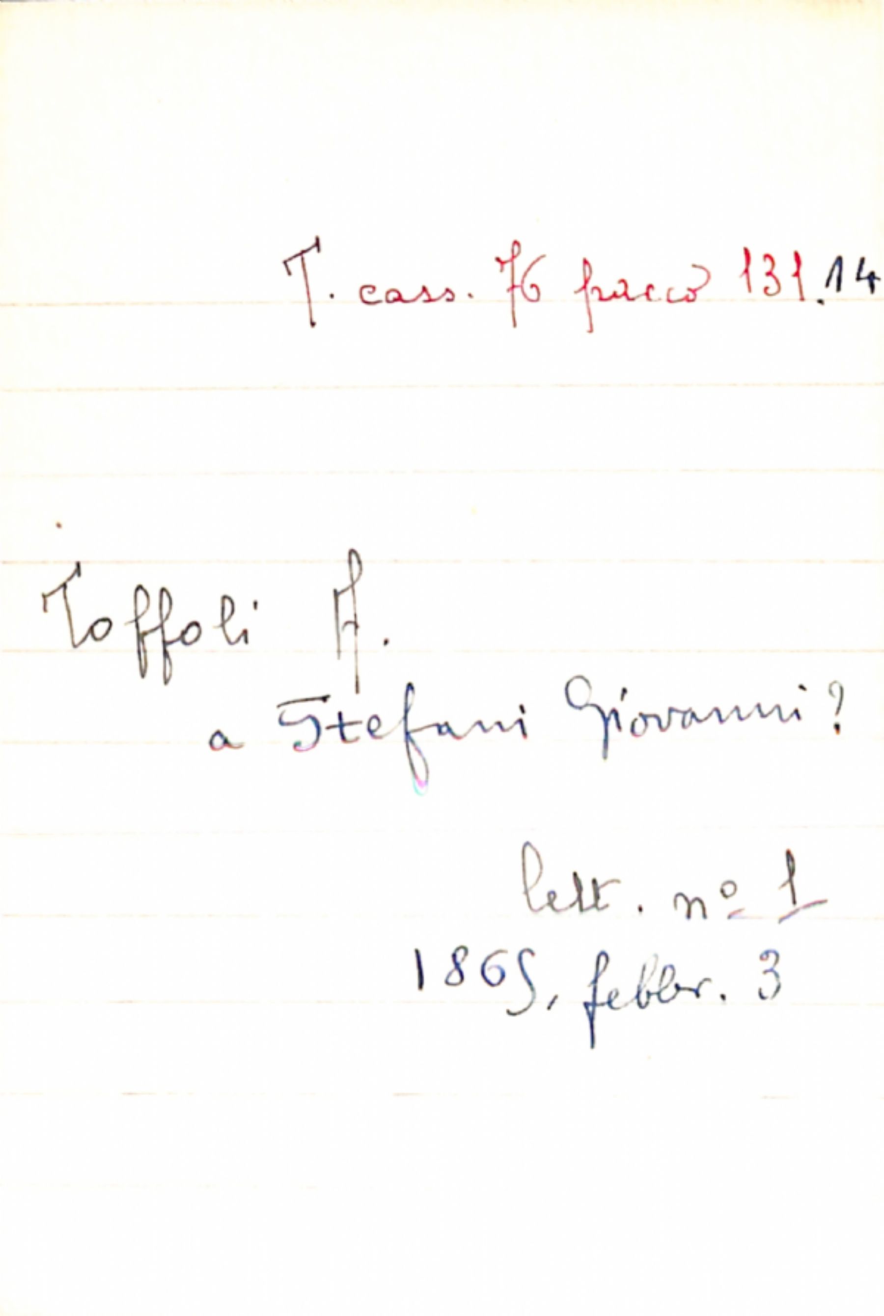 Fascicolo Toffoli, A. a Stefani, Giovanni ?