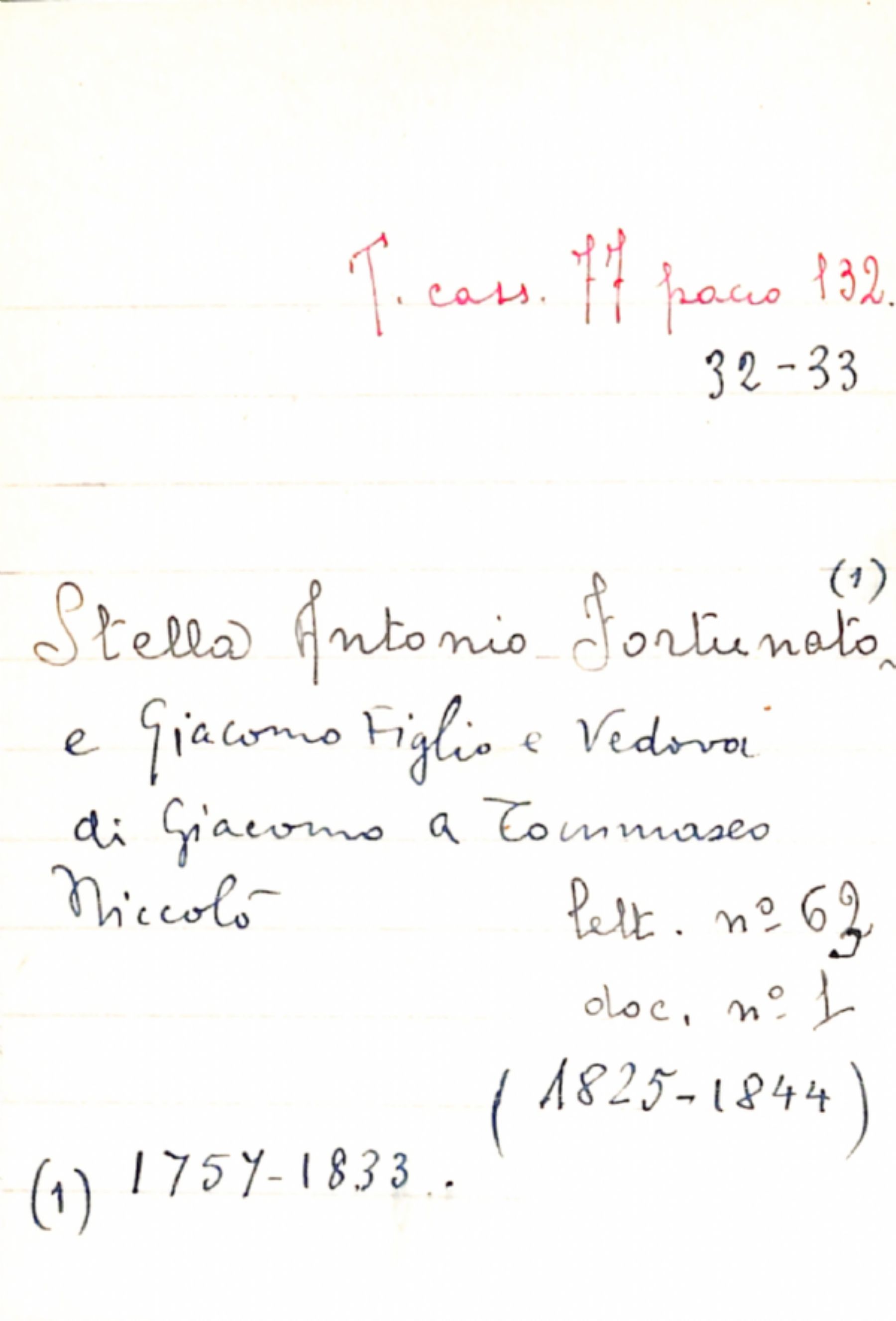 • Stella, Antonio Fortunato; Giacomo Figlio; Vedova di Giacomo a Tommaseo, Niccolò
