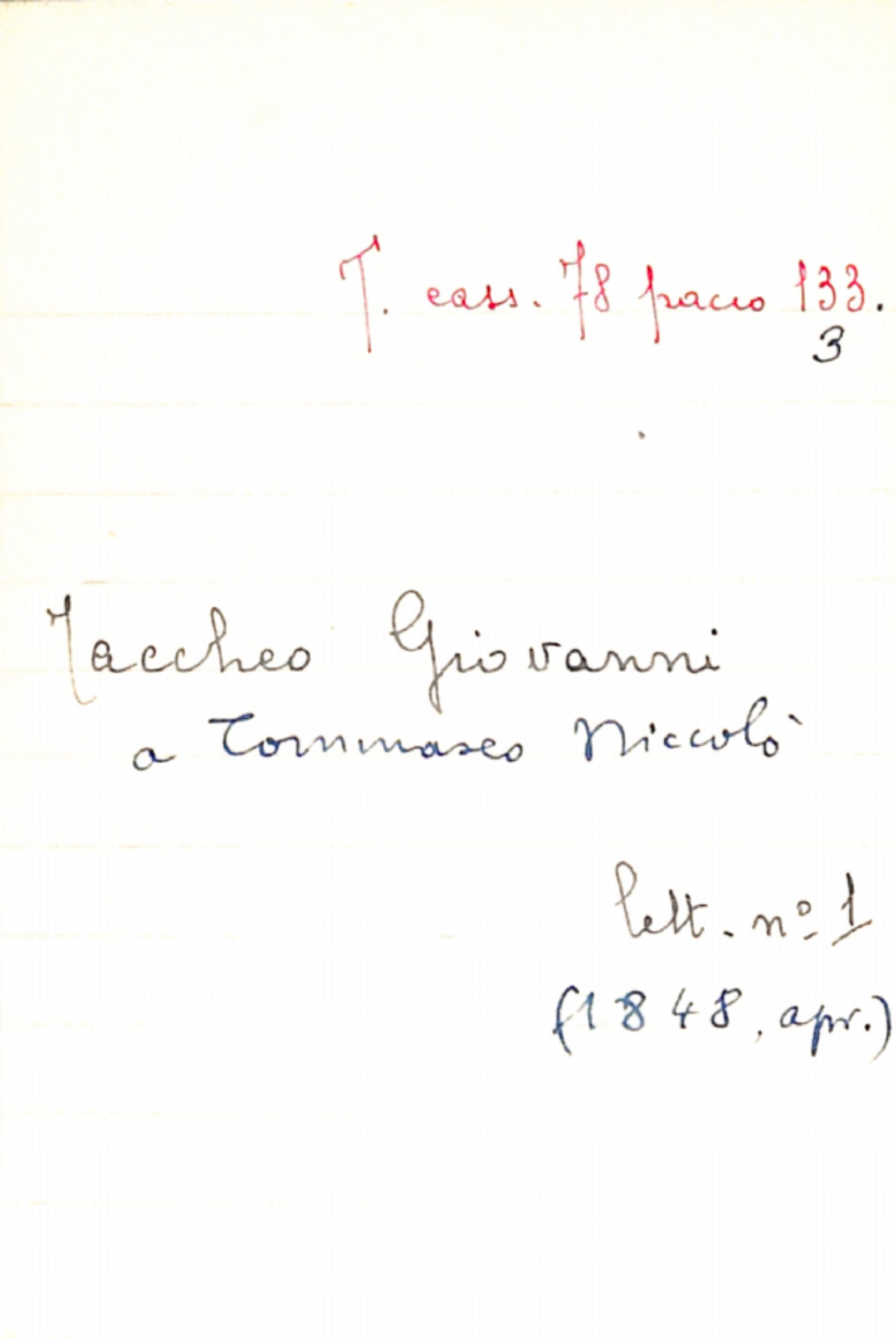 Fascicolo Taccheo, Giovanni a Tommaseo, Niccolò