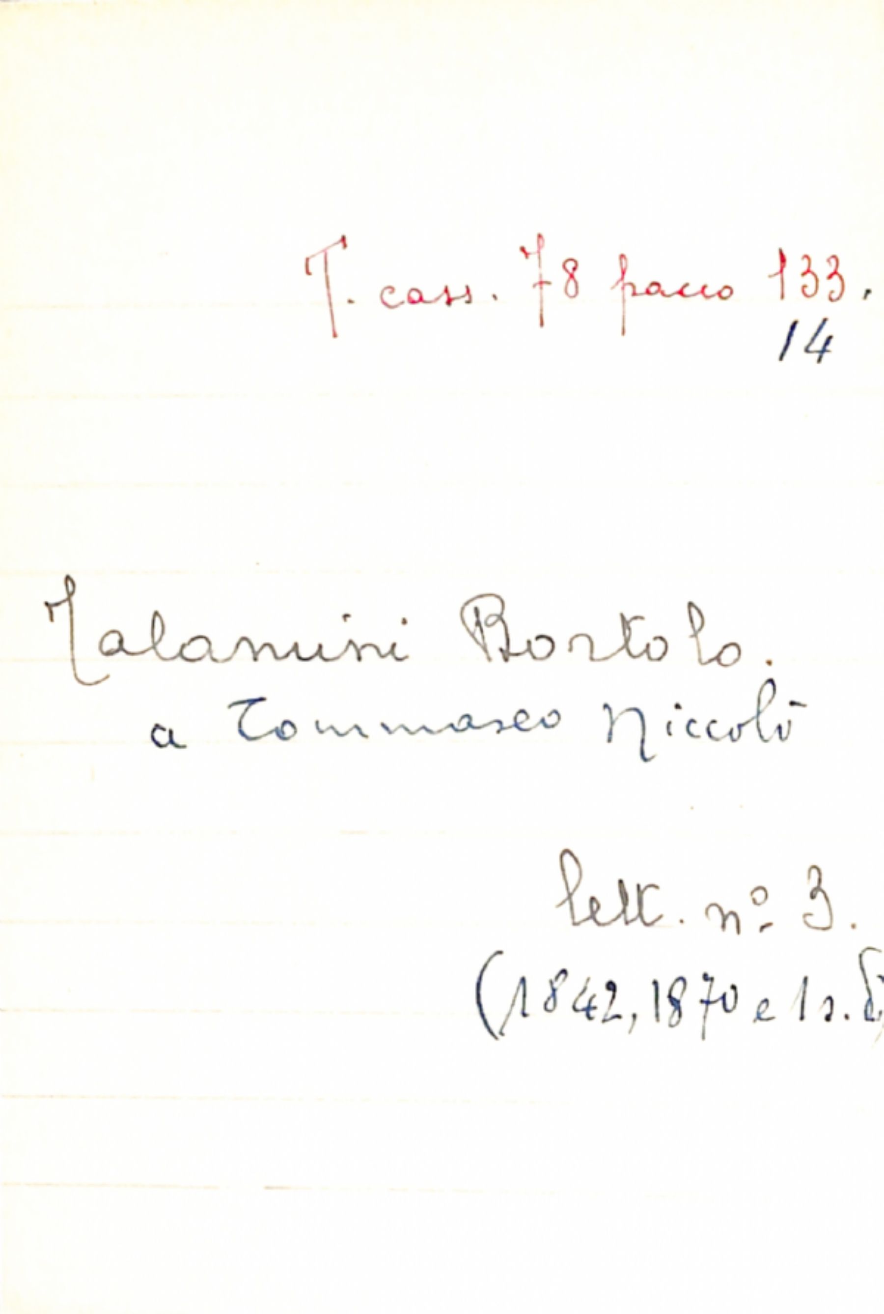 Fascicolo Talamini, Bartolo a Tommaseo, Niccolò