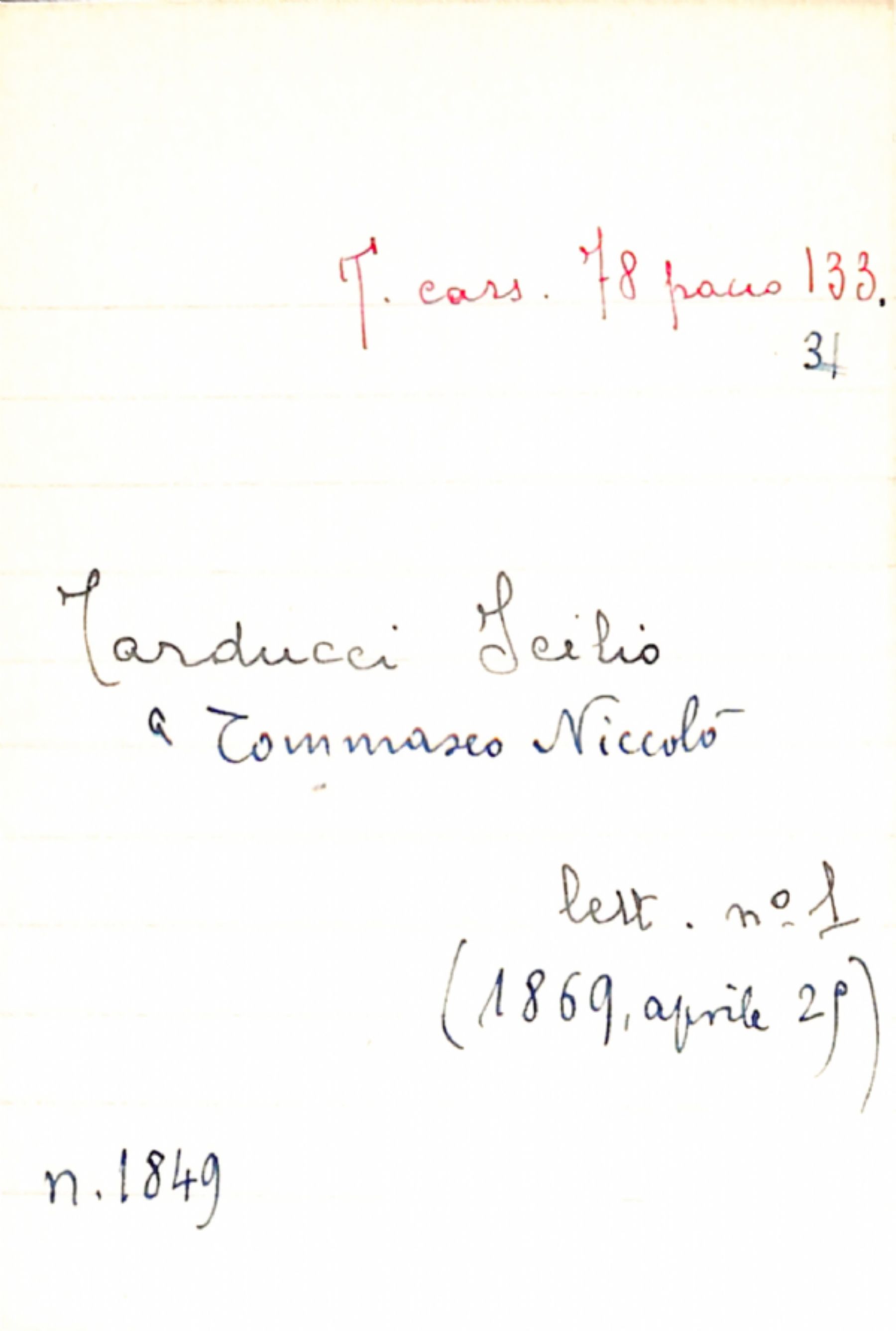Fascicolo Tarducci, Icilio a Tommaseo, Niccolò