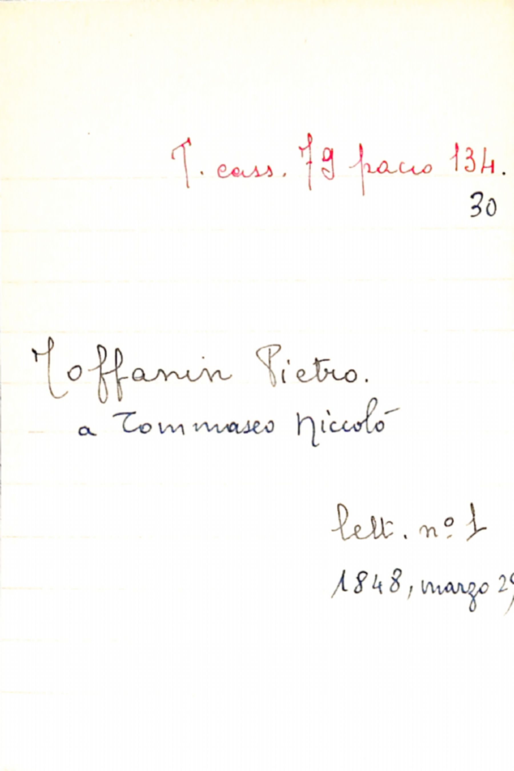Fascicolo Toffanin, Pietro a Tommaseo, Niccolò