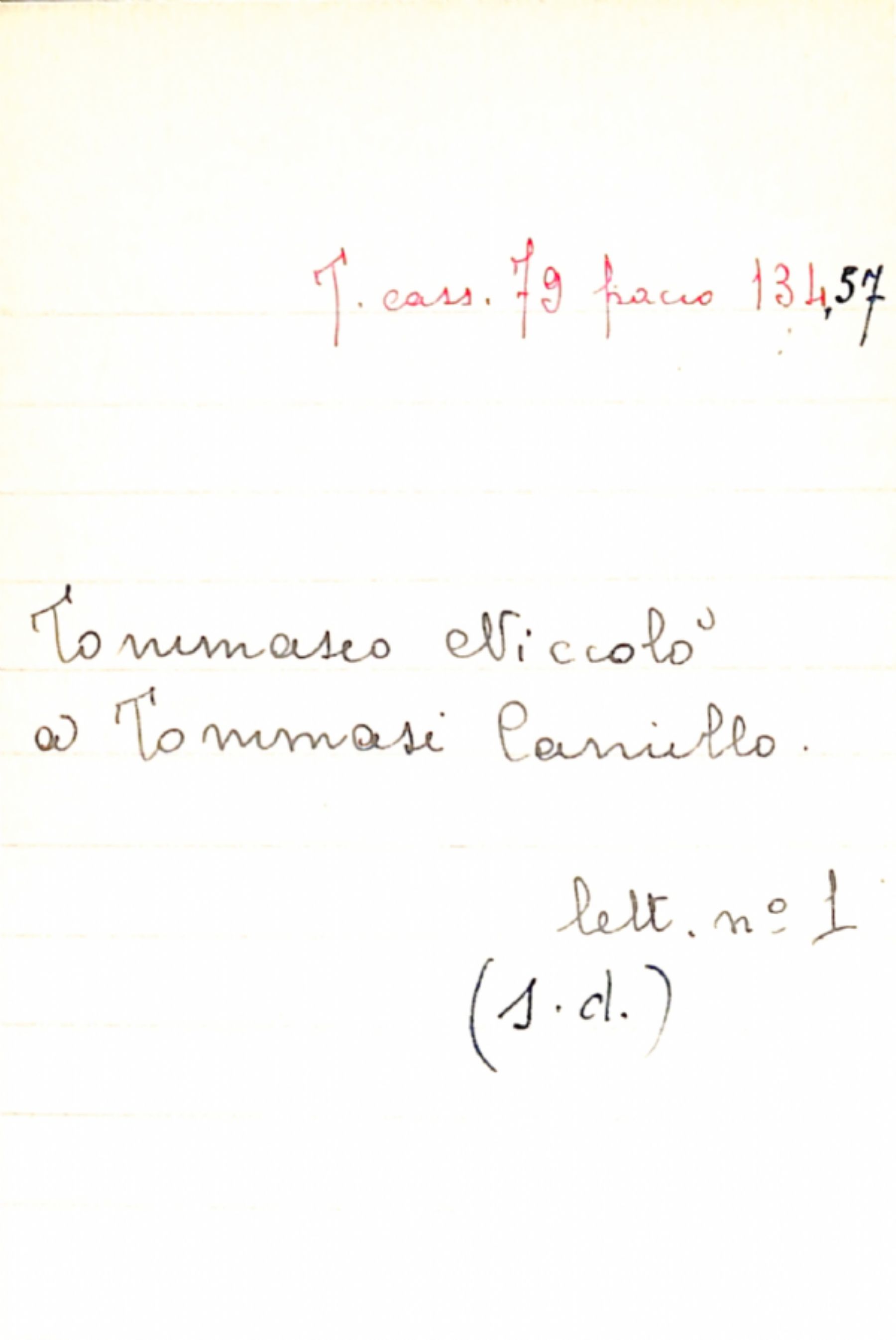 Fascicolo Tommaseo, Niccolò a Tommasi, Camillo