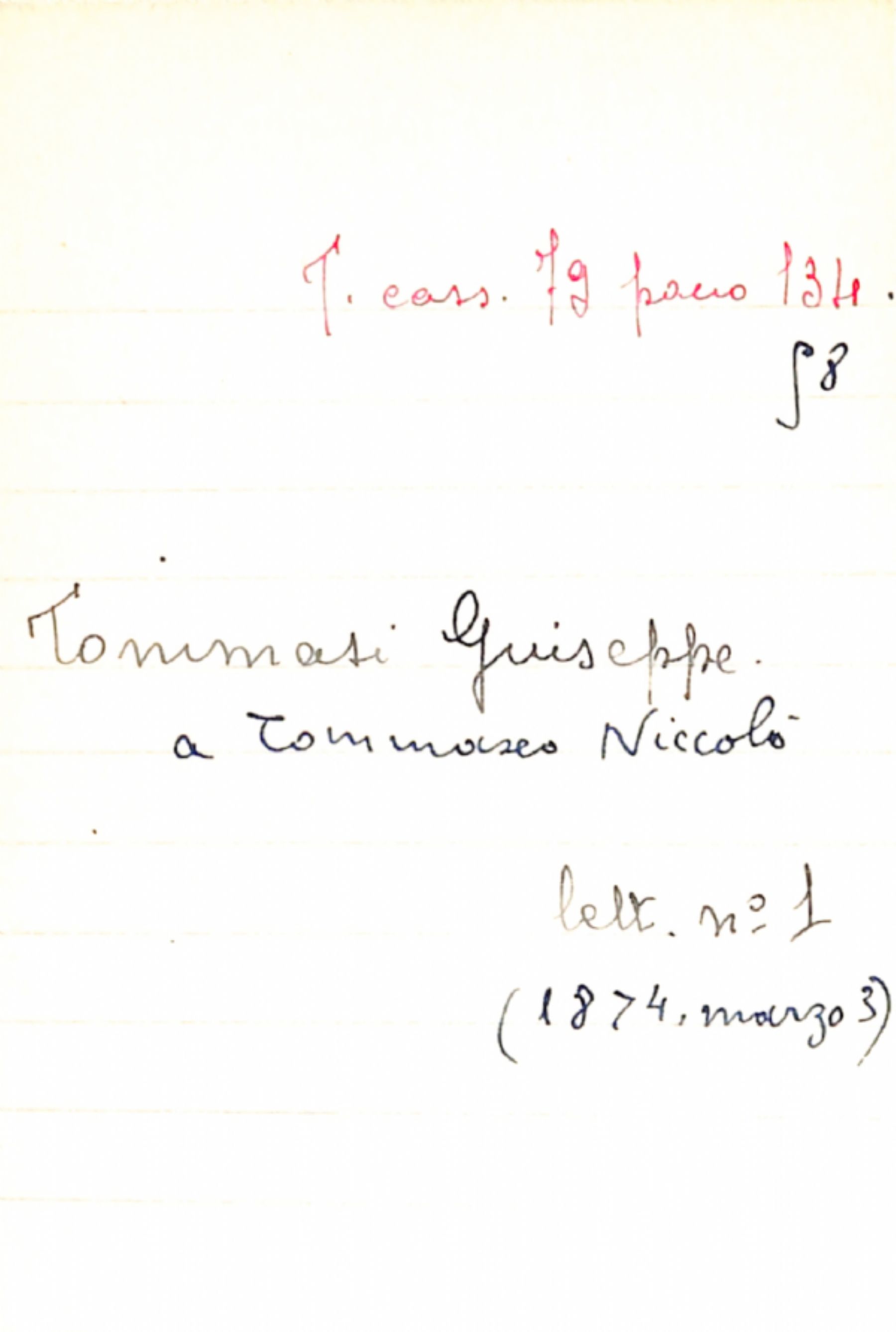 Fascicolo Tommasi, Giuseppe a Tommaseo, Niccolò