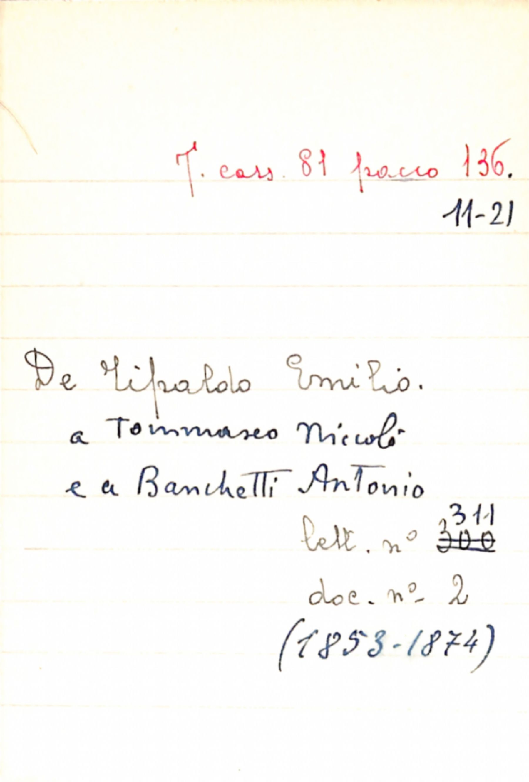 • De Tipaldo, Emilio a Tommaseo, Niccolò; Banchetti, Antonio