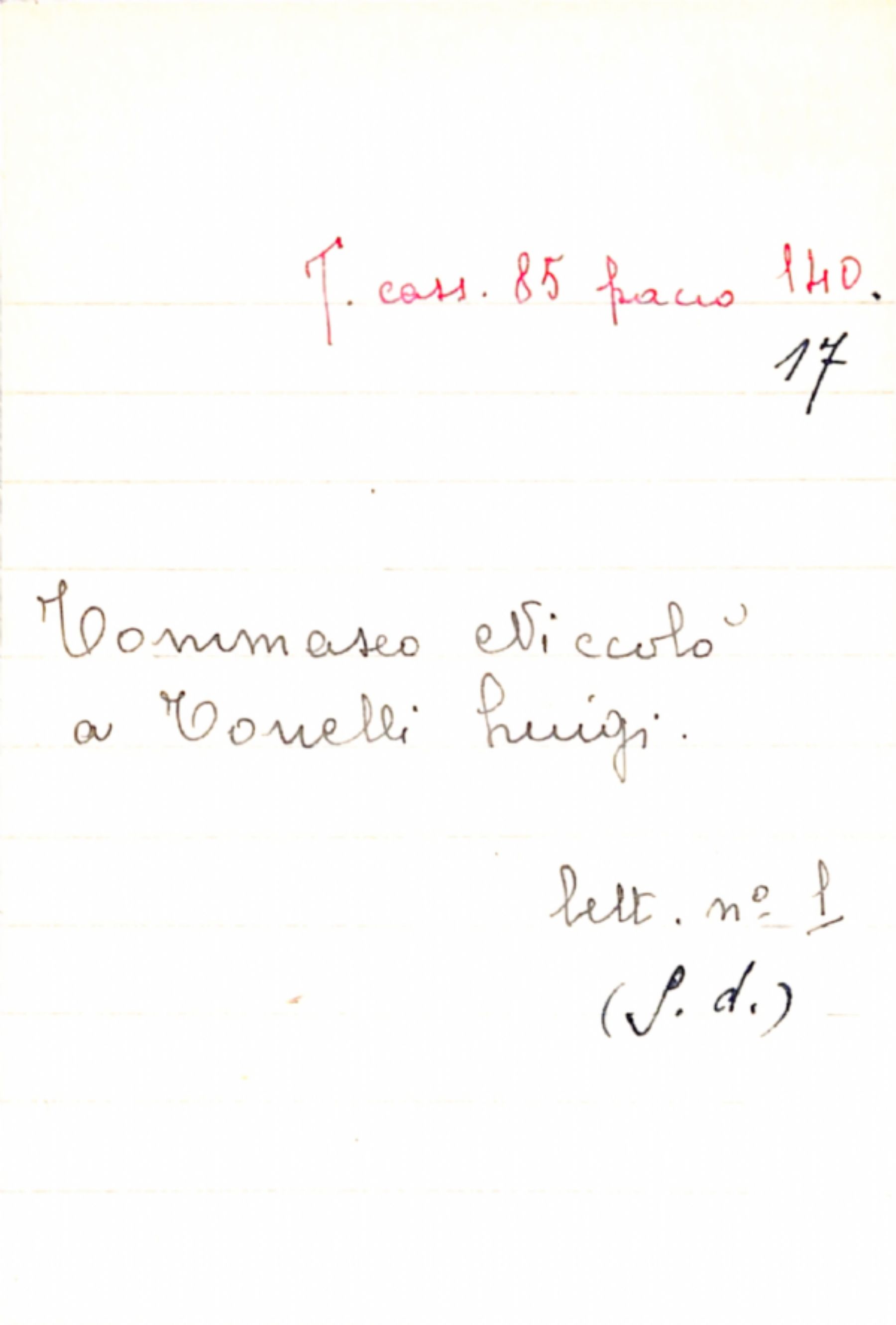 Fascicolo Tommaseo, Niccolò a Tonelli, Luigi