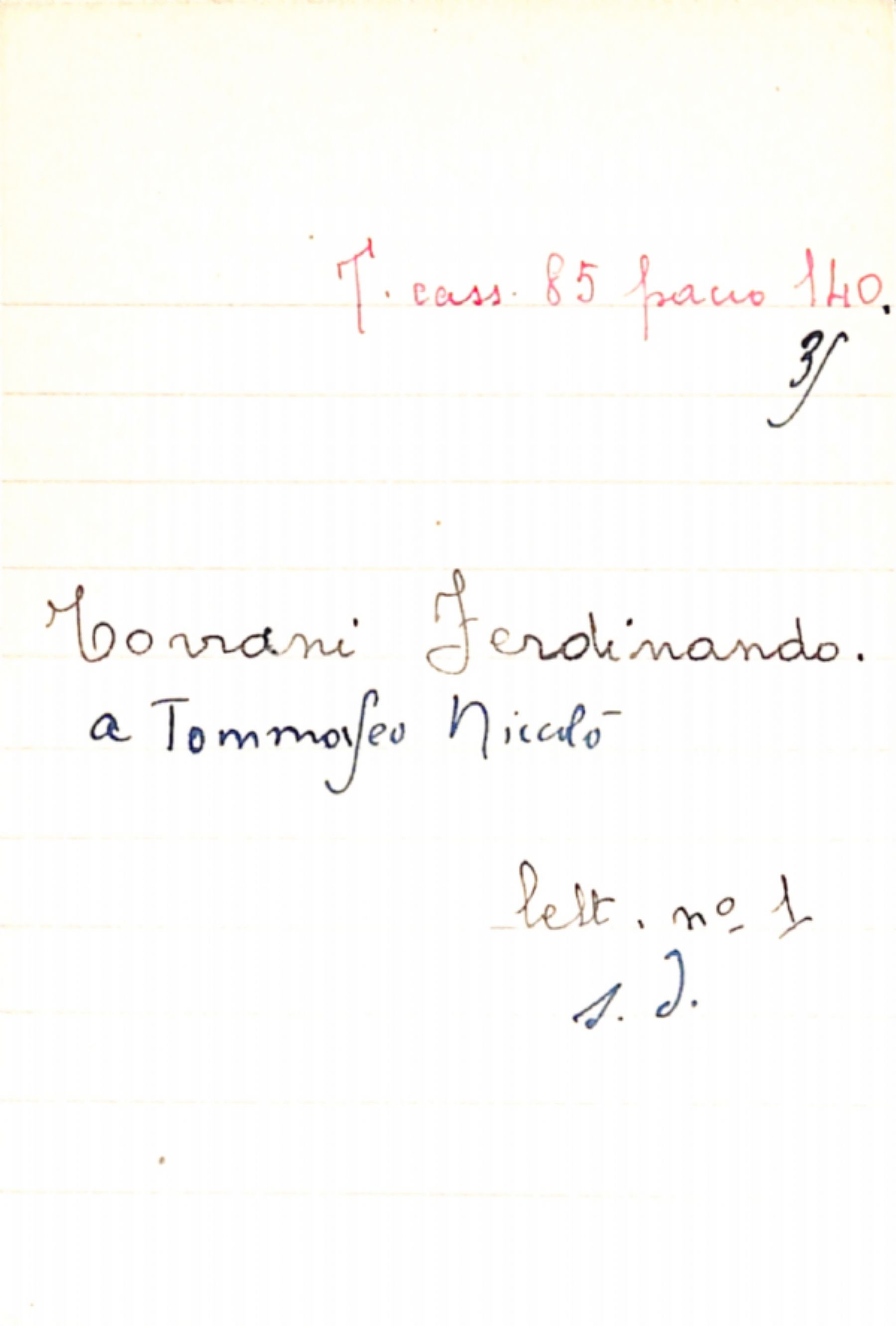 Fascicolo Torrani, Ferdinando a Tommaseo, Niccolò