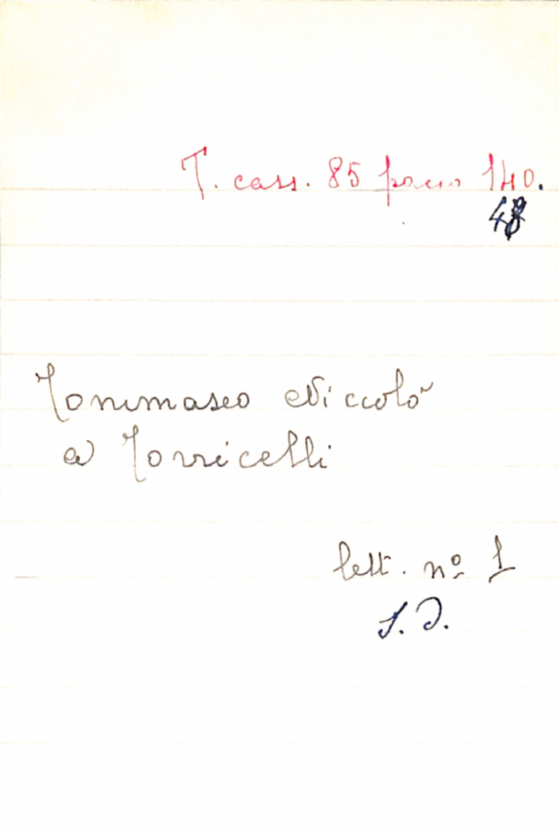 Fascicolo Tommaseo, Niccolò a Torricelli