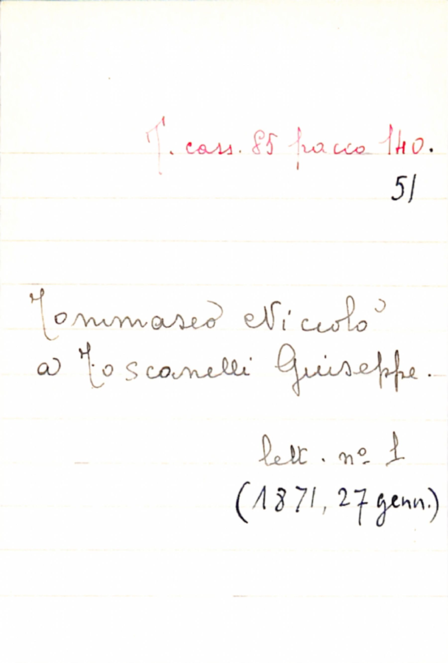 Fascicolo Tommaseo, Niccolò a Toscanelli, Giuseppe