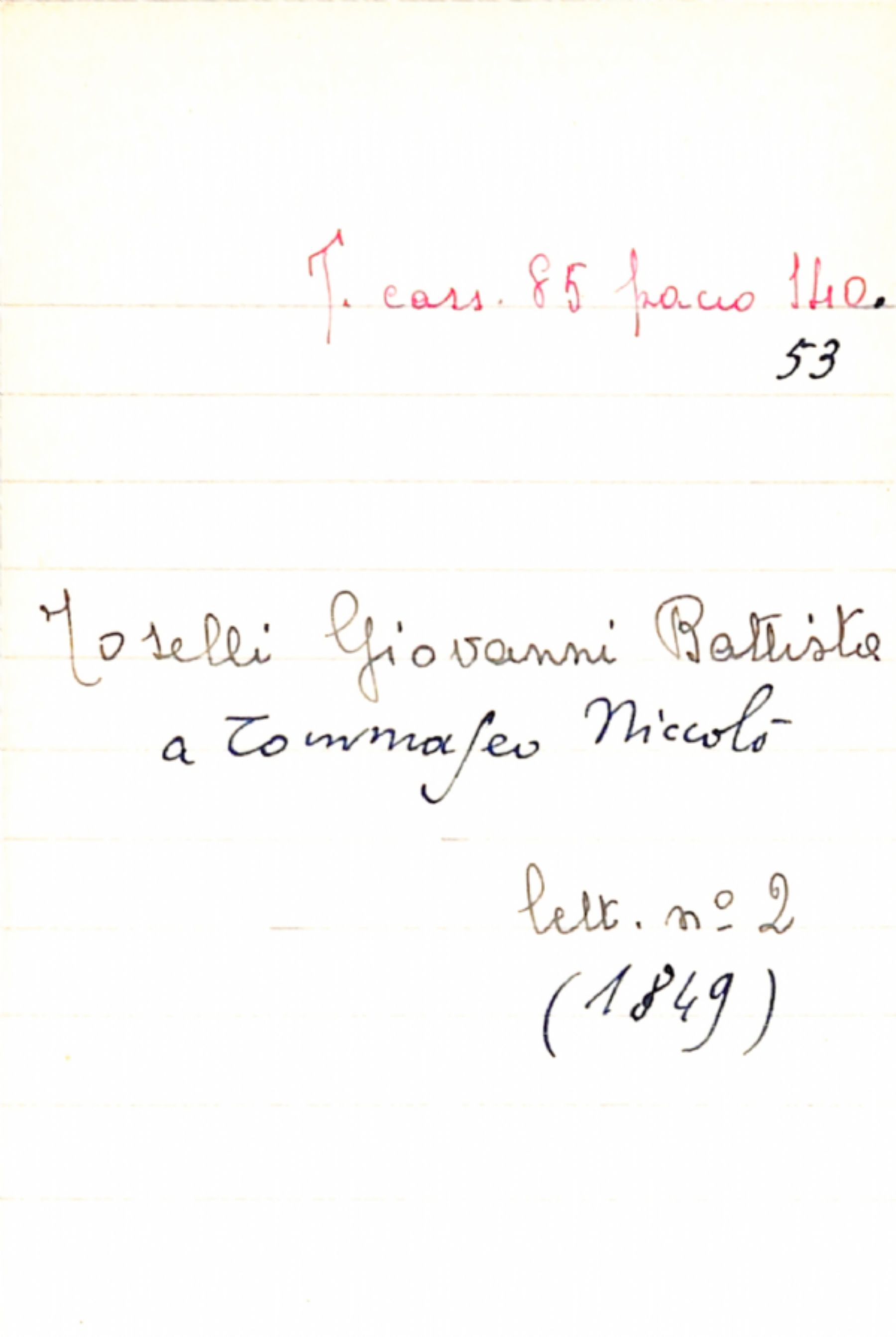 Fascicolo Toselli, Giovanni Battista a Tommaseo, Niccolò