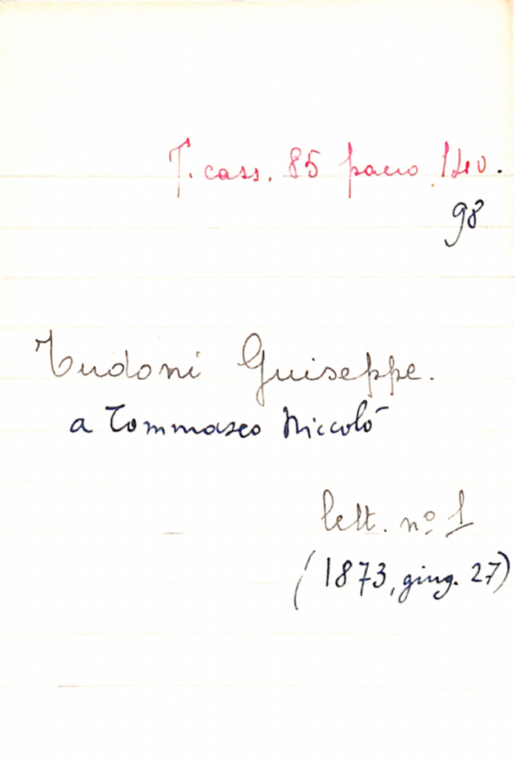 Fascicolo Tudoni, Giuseppe a Tommaseo, Niccolò