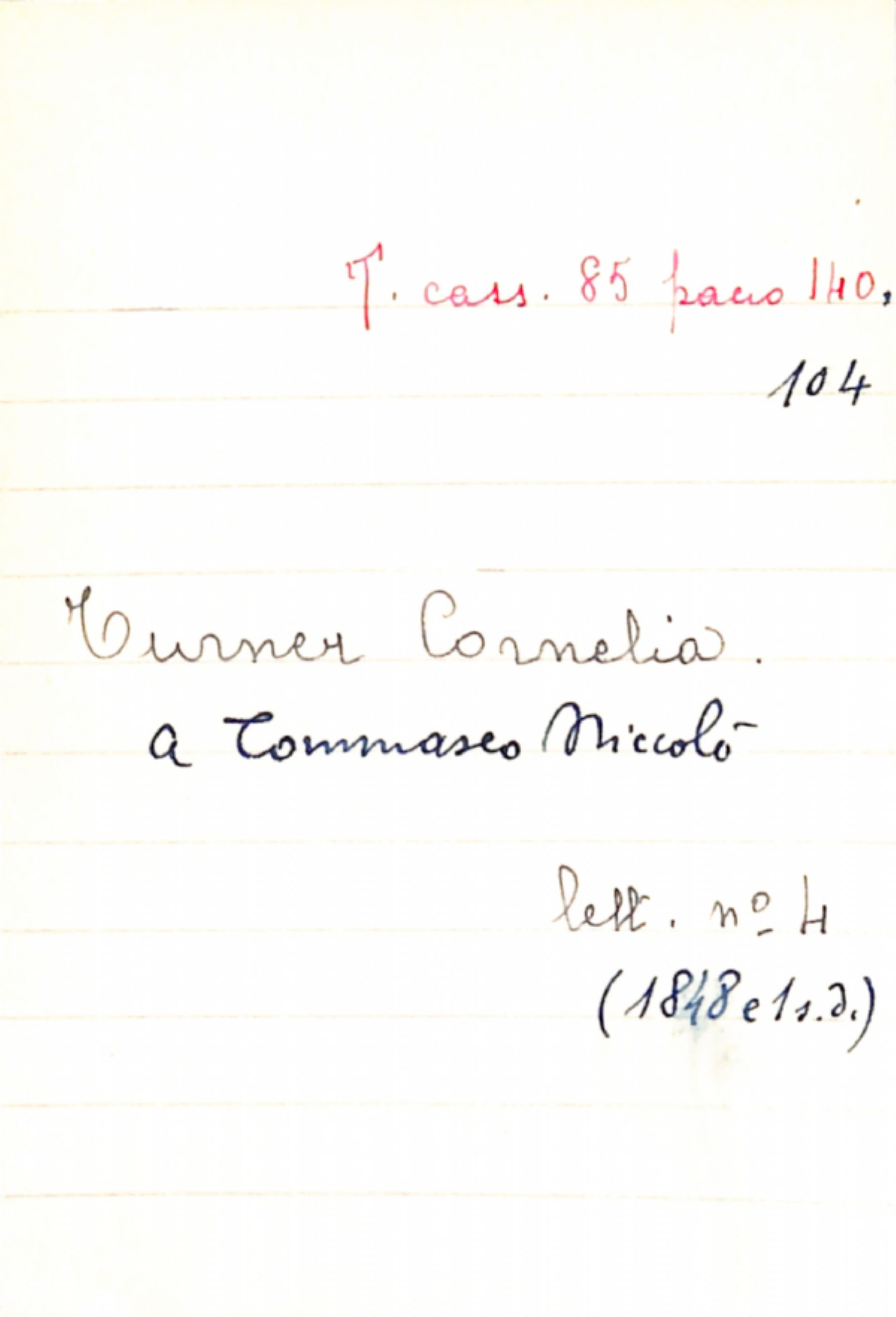Fascicolo Turner, Cornelia a Tommaseo, Niccolò