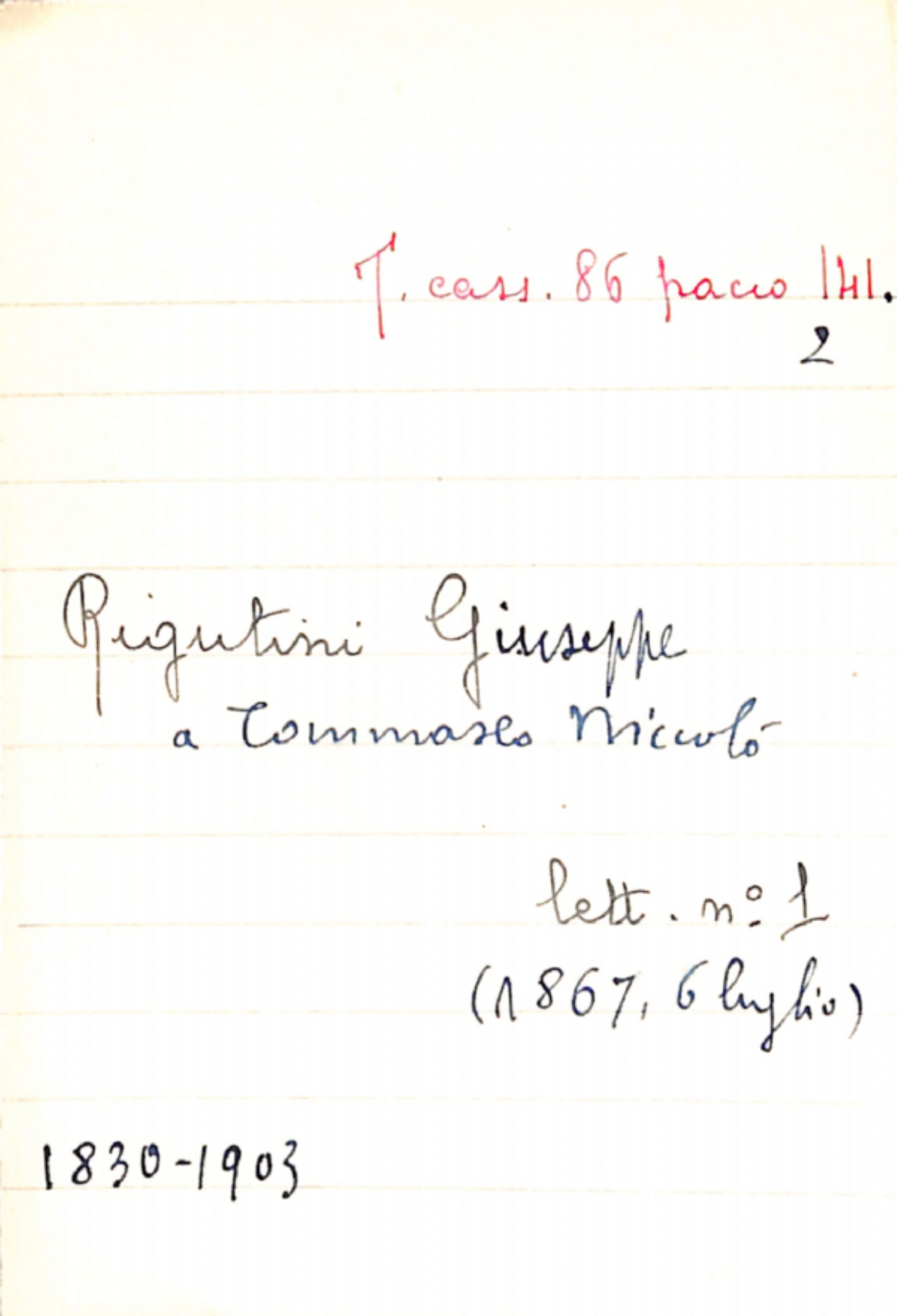 Fascicolo Rigutini, Giuseppe a Tommaseo, Niccolò