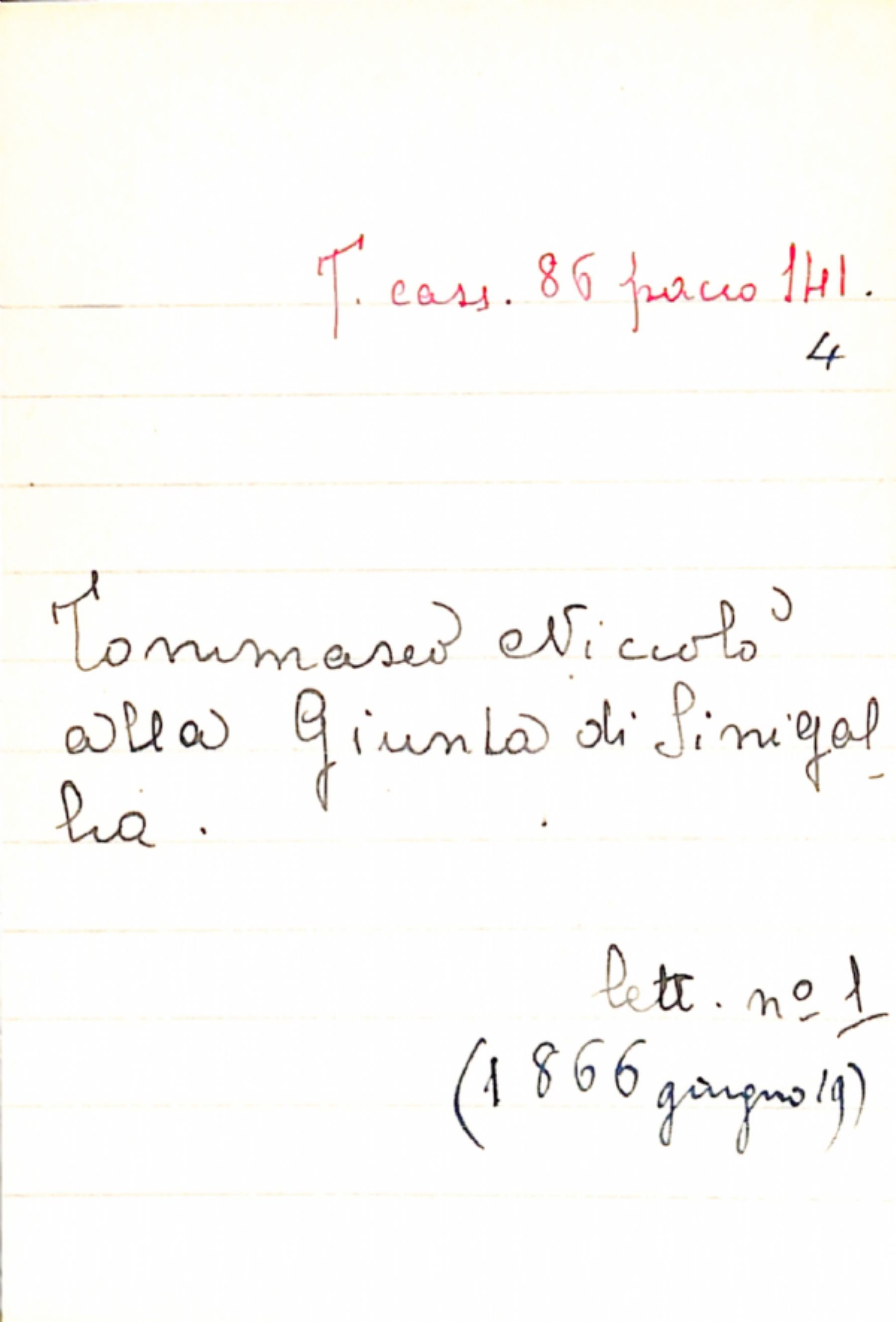 Fascicolo Tommaseo, Niccolò a Giunta di Sinigallia