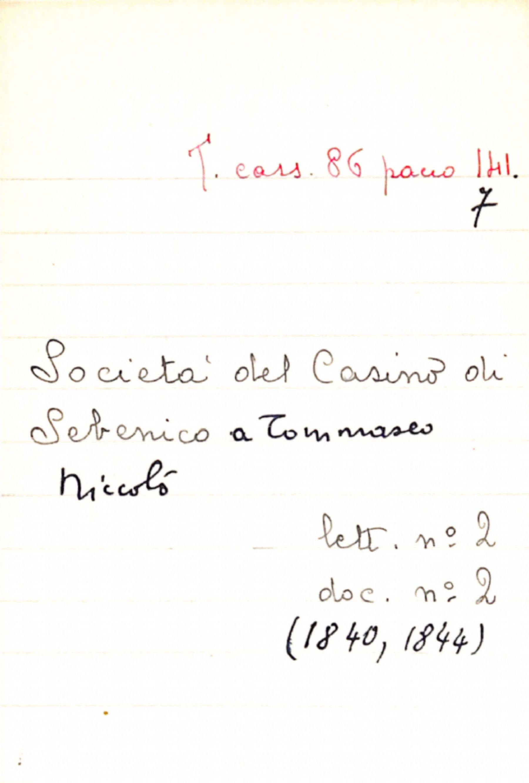 Fascicolo Società del Casino di Sebenico a Tommaseo, Niccolò