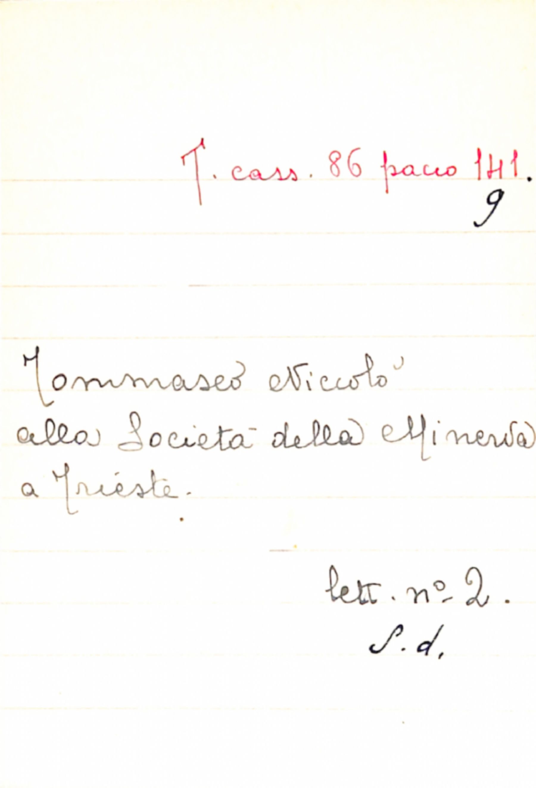 Fascicolo Tommaseo, Niccolò a Società della Minerva a Trieste