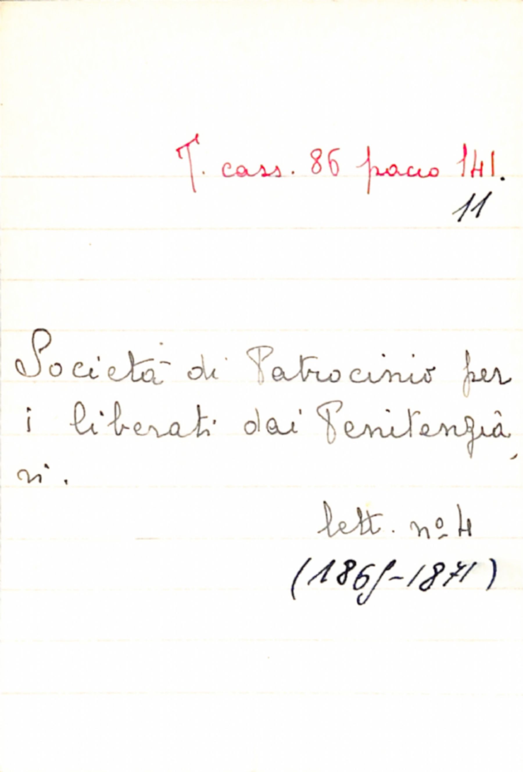 • Società di Patrocinio per i liberati dai Penitenziari a Non riportato