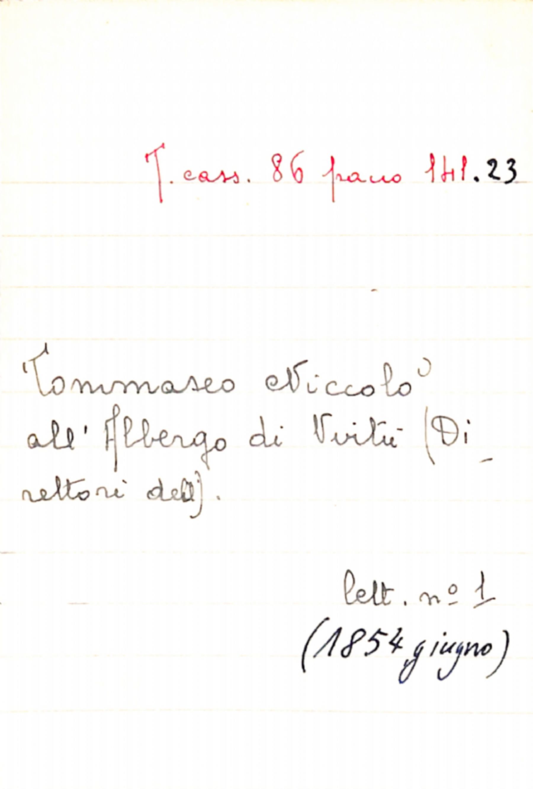 Fascicolo Tommaseo, Niccolò a Direttori dell'Albergo di Virtù