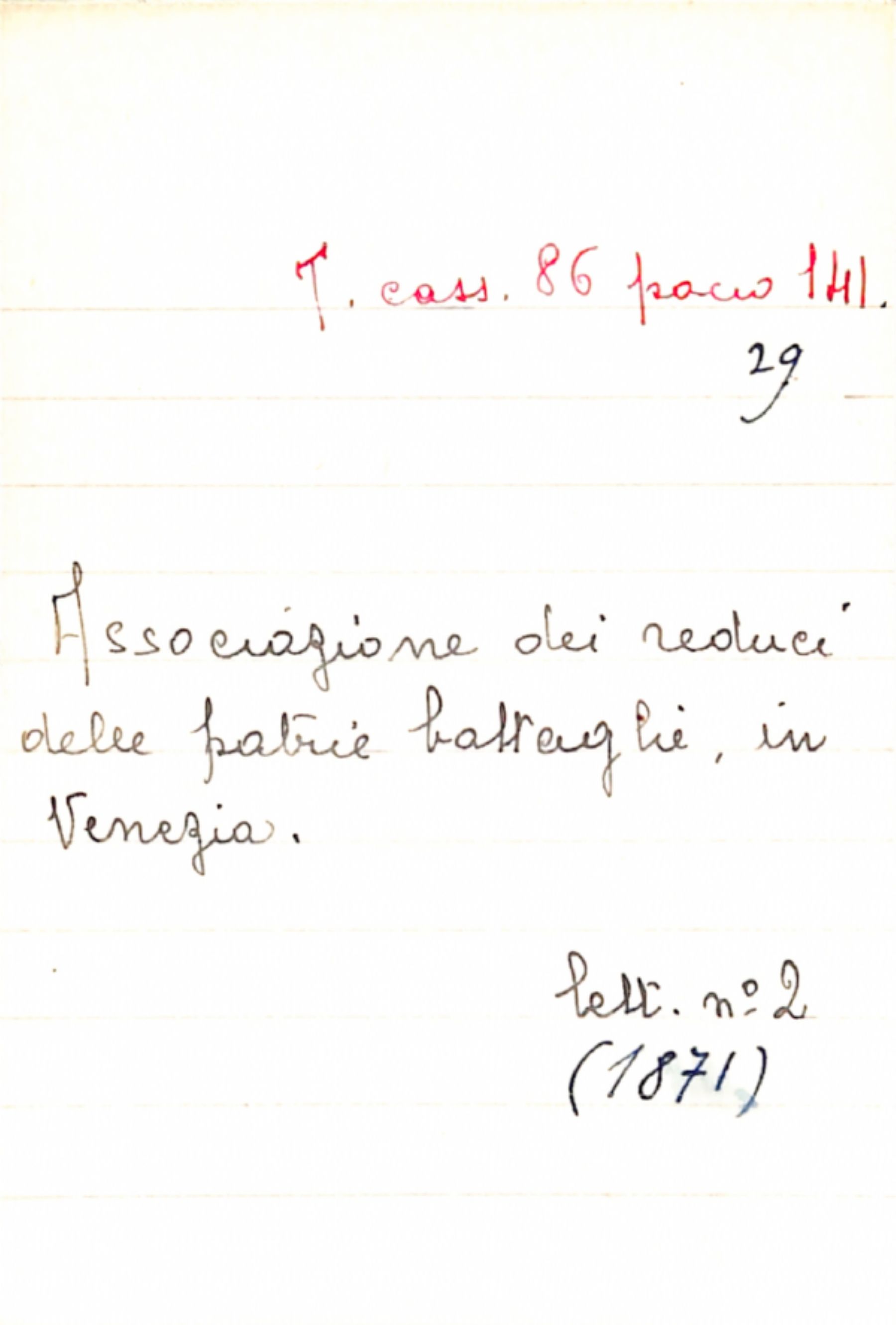 Fascicolo Associazione dei reduci delle patrie battaglie in Venezia a Non riportato