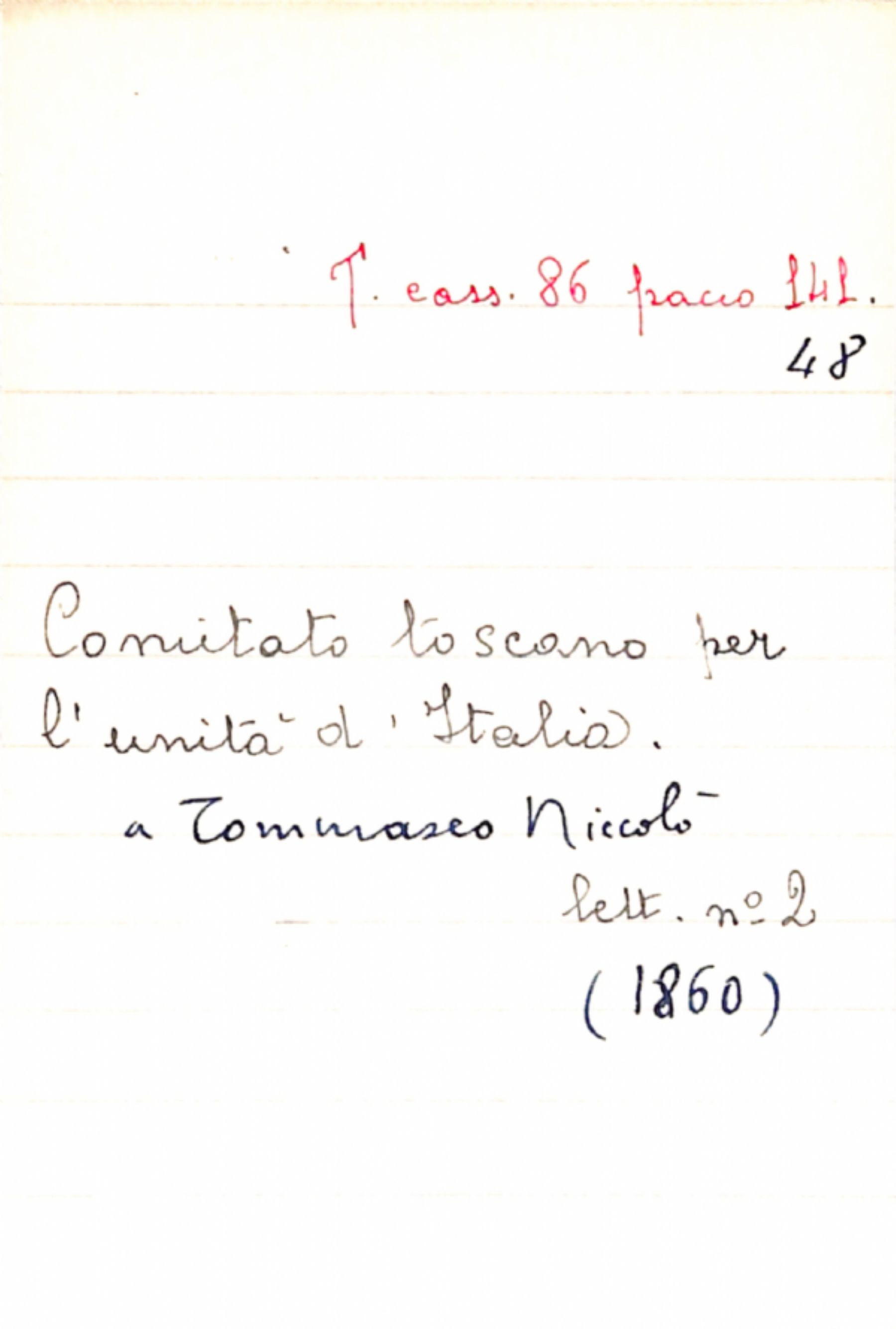 Fascicolo Comitato toscano per l'unità d'Italia a Tommaseo, Niccolò