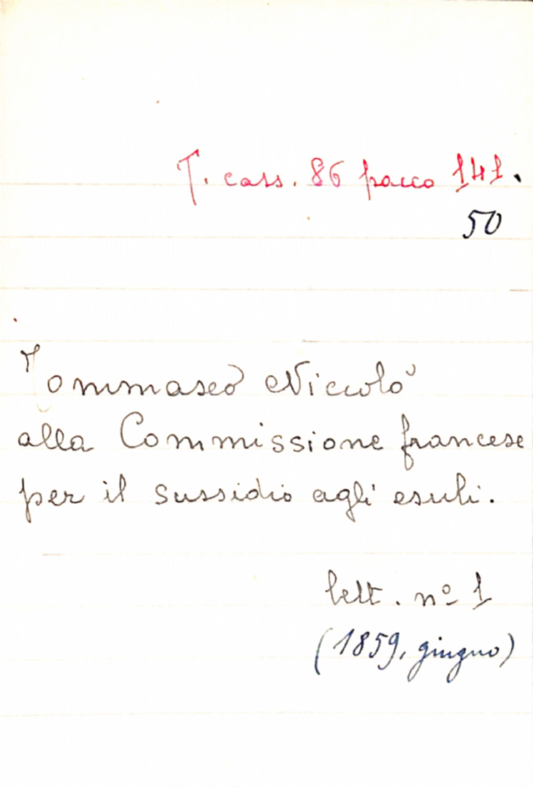 Fascicolo Tommaseo, Niccolò a Commissione francese per il sussidio agli esuli