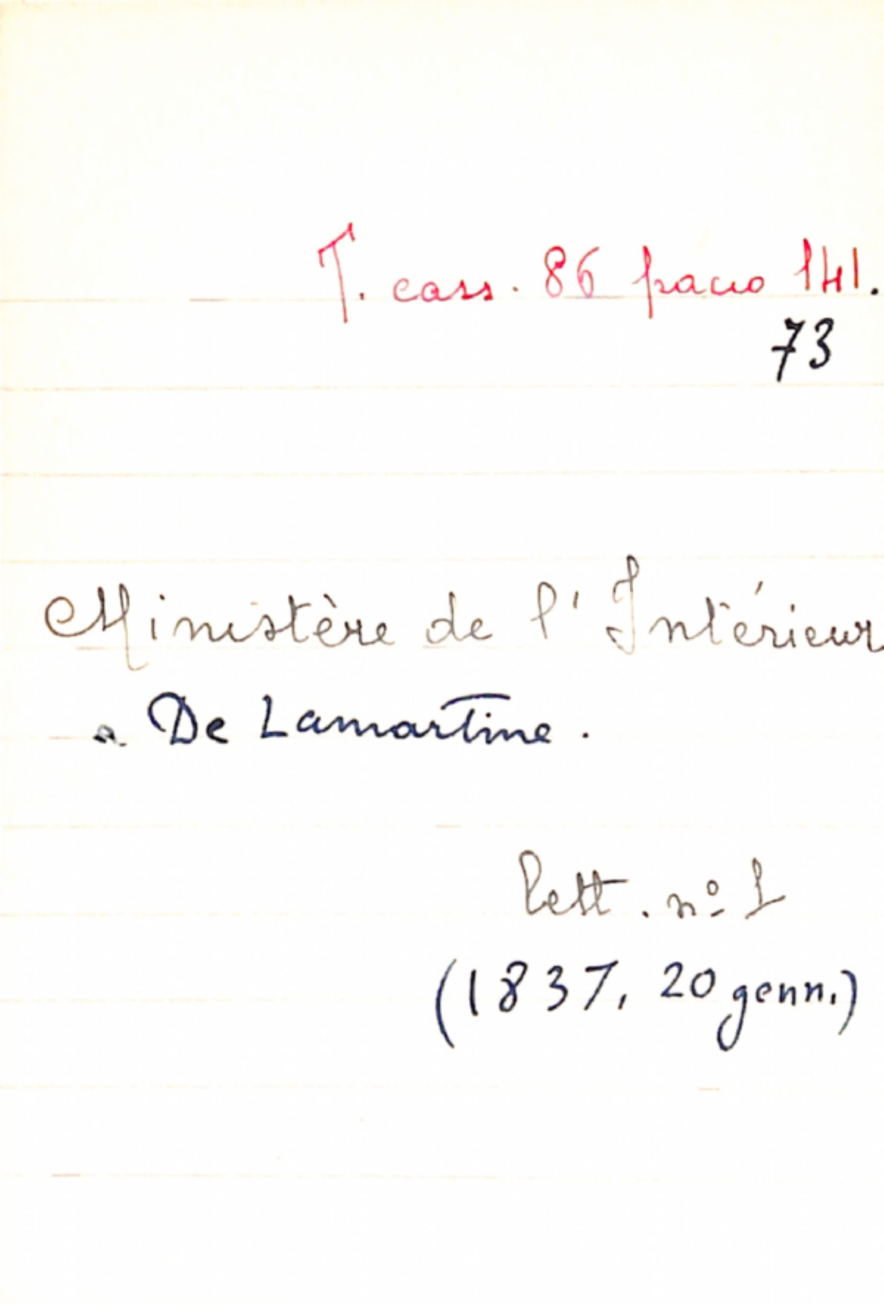 Fascicolo Ministère de l'Intérieur a De Lamartine
