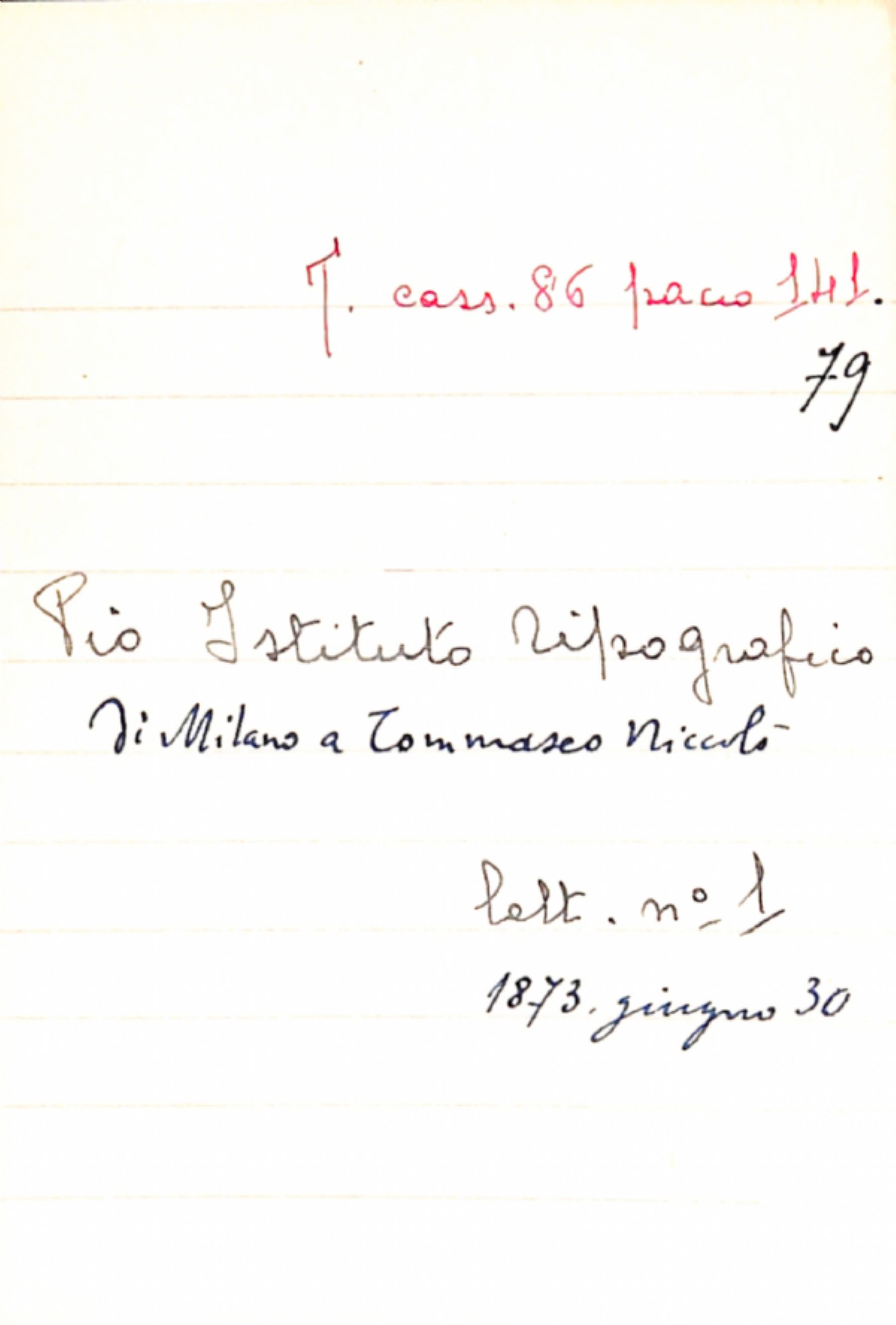 Fascicolo Pio Istituto Tipografico di Milano a Tommaseo, Niccolò