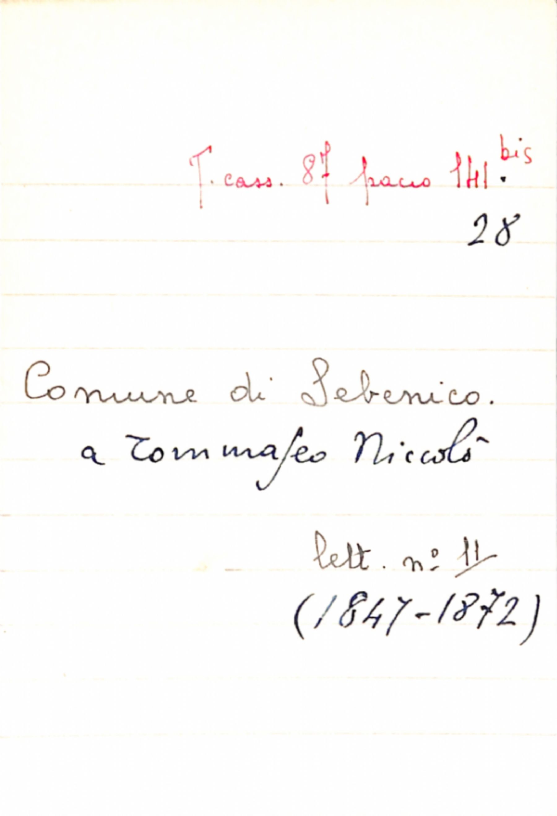Fascicolo Comune di Sebenico a Tommaseo, Niccolò