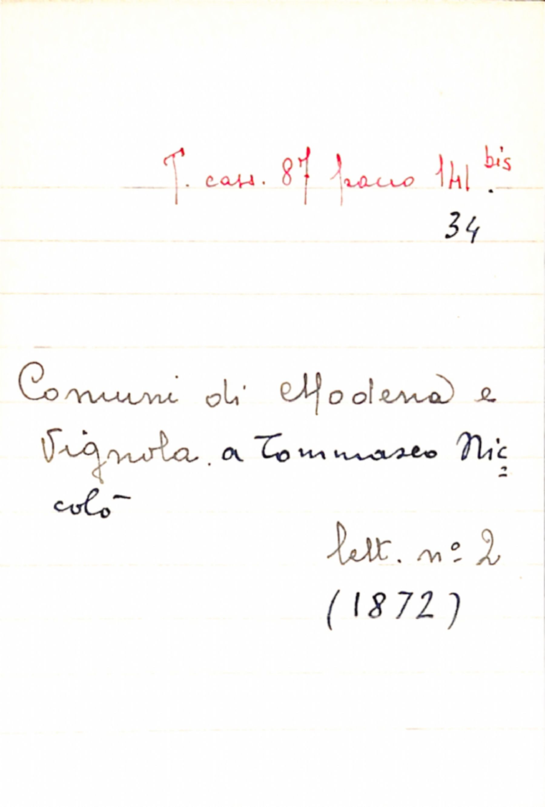 Fascicolo Comune di Modena; Comune di Vignola a Tommaseo, Niccolò