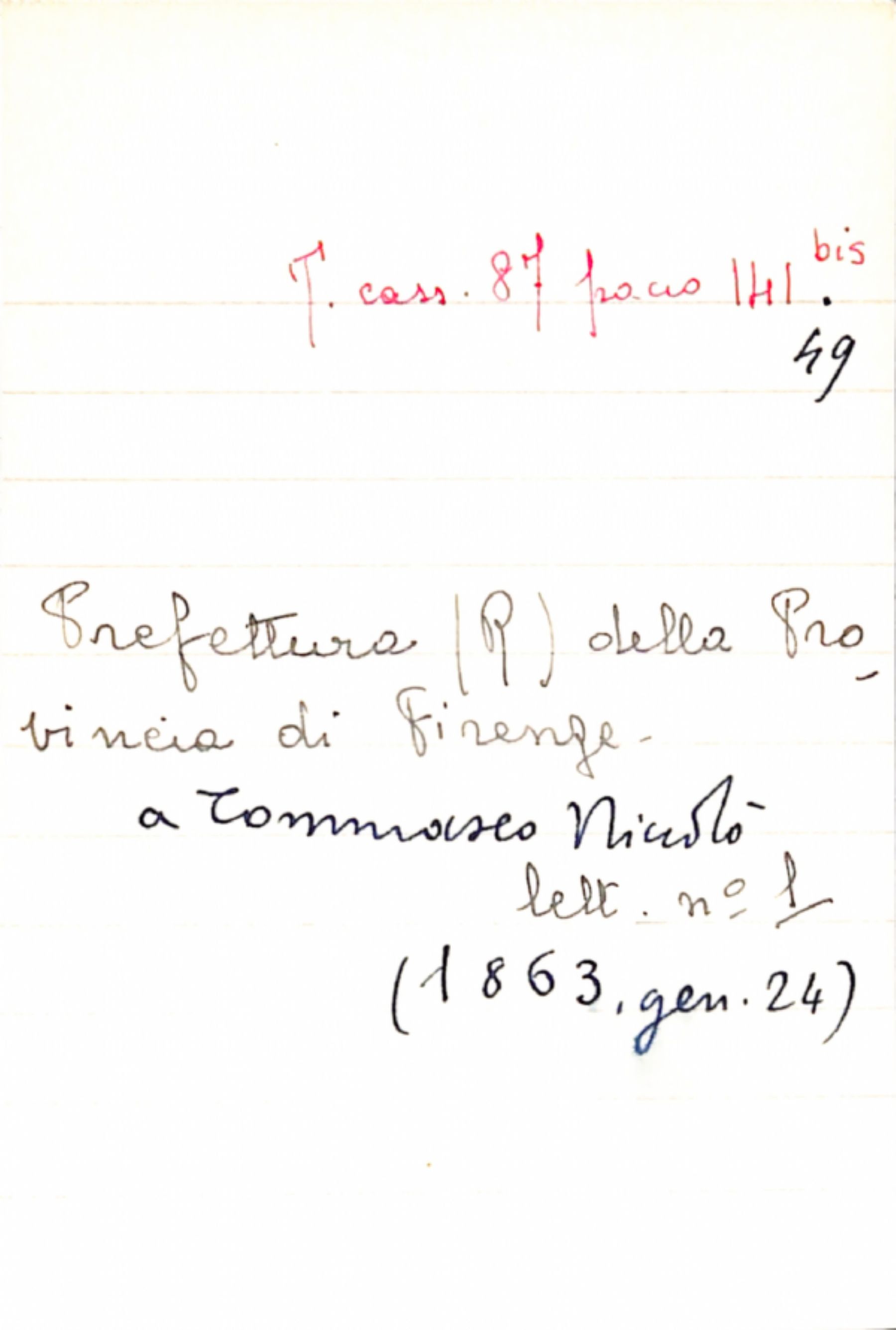 Fascicolo Prefettura (R) della Provincia di Firenze a Tommaseo, Niccolò