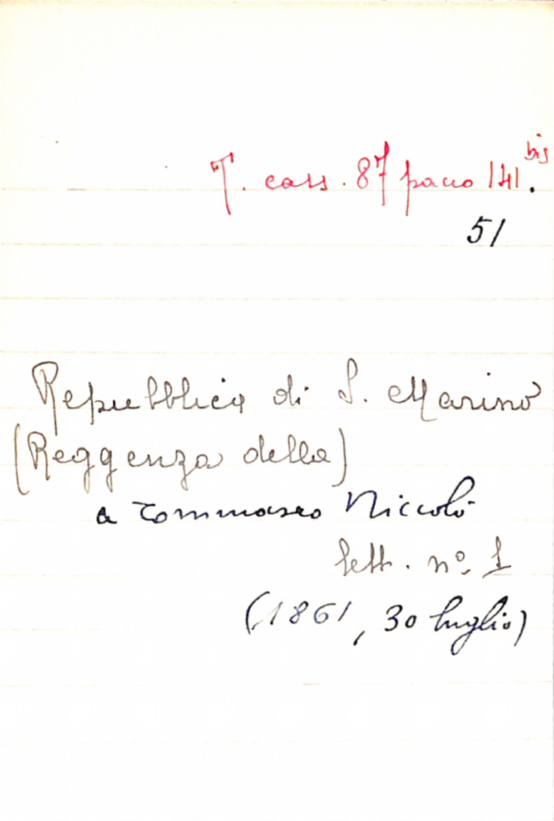 Fascicolo Repubblica di S. Marino (Reggenza della) a Tommaseo, Niccolò