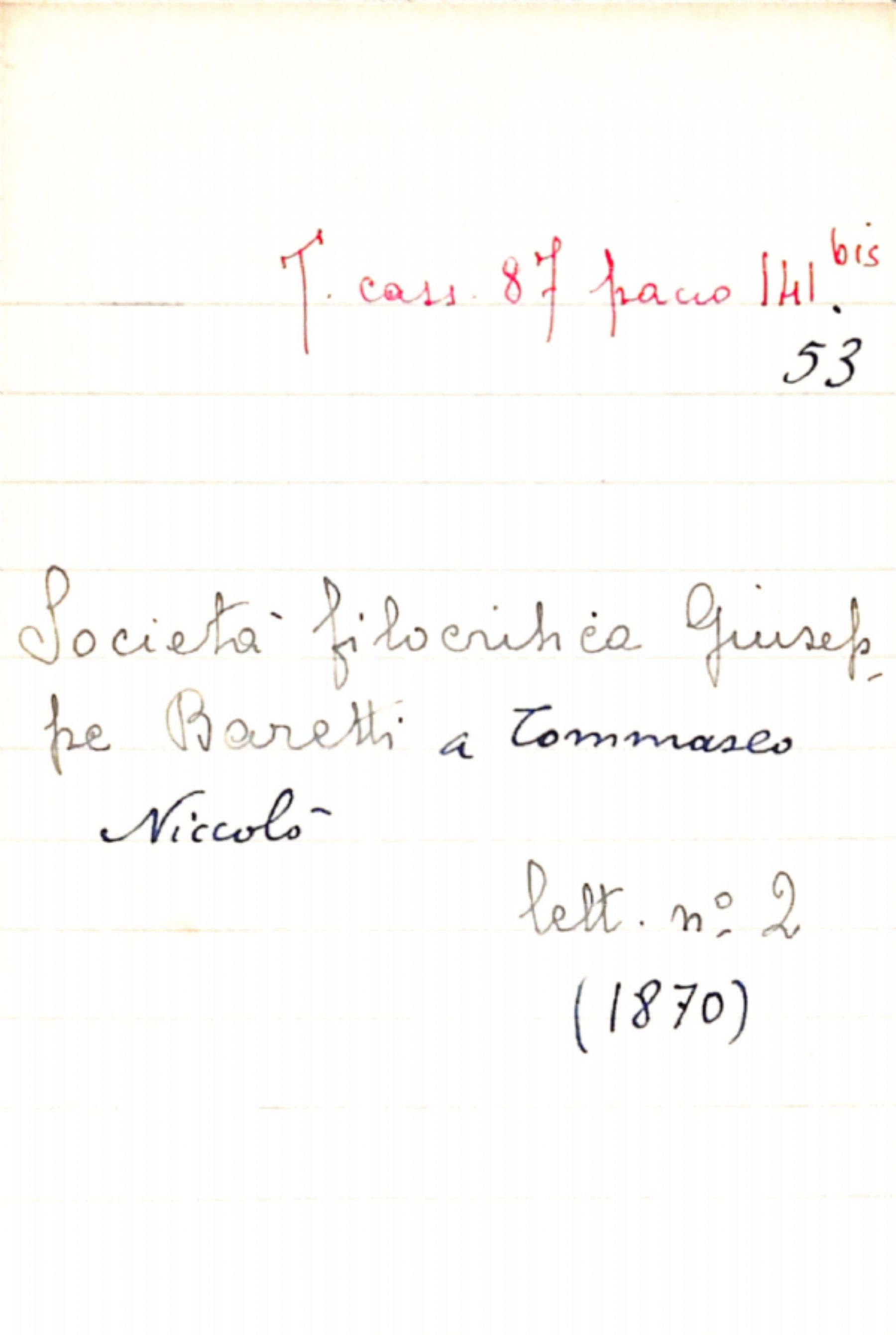 Fascicolo Società filocritica Giuseppe Baretti a Tommaseo, Niccolò