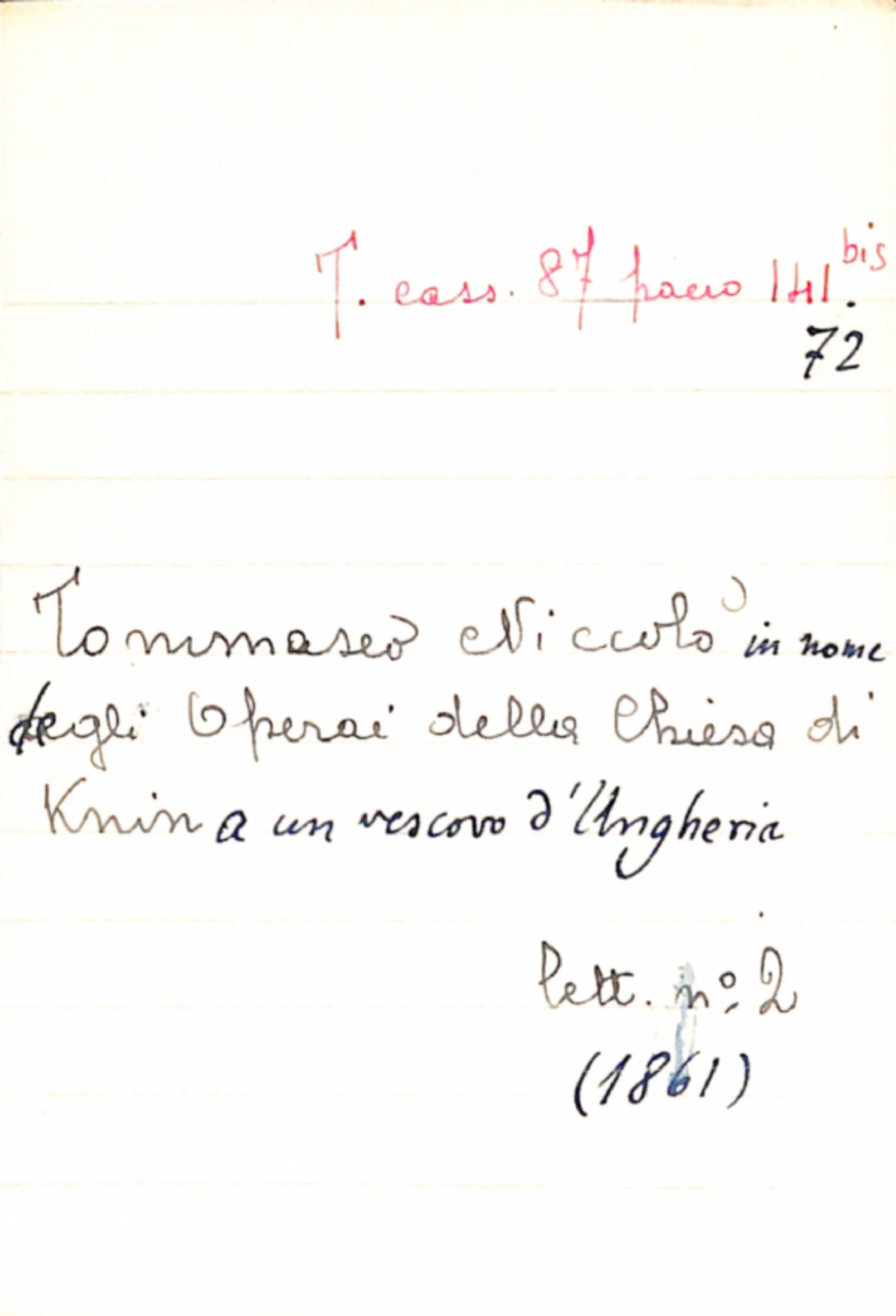 Fascicolo Tommaseo, Niccolò a Vescovo d'Ungheria