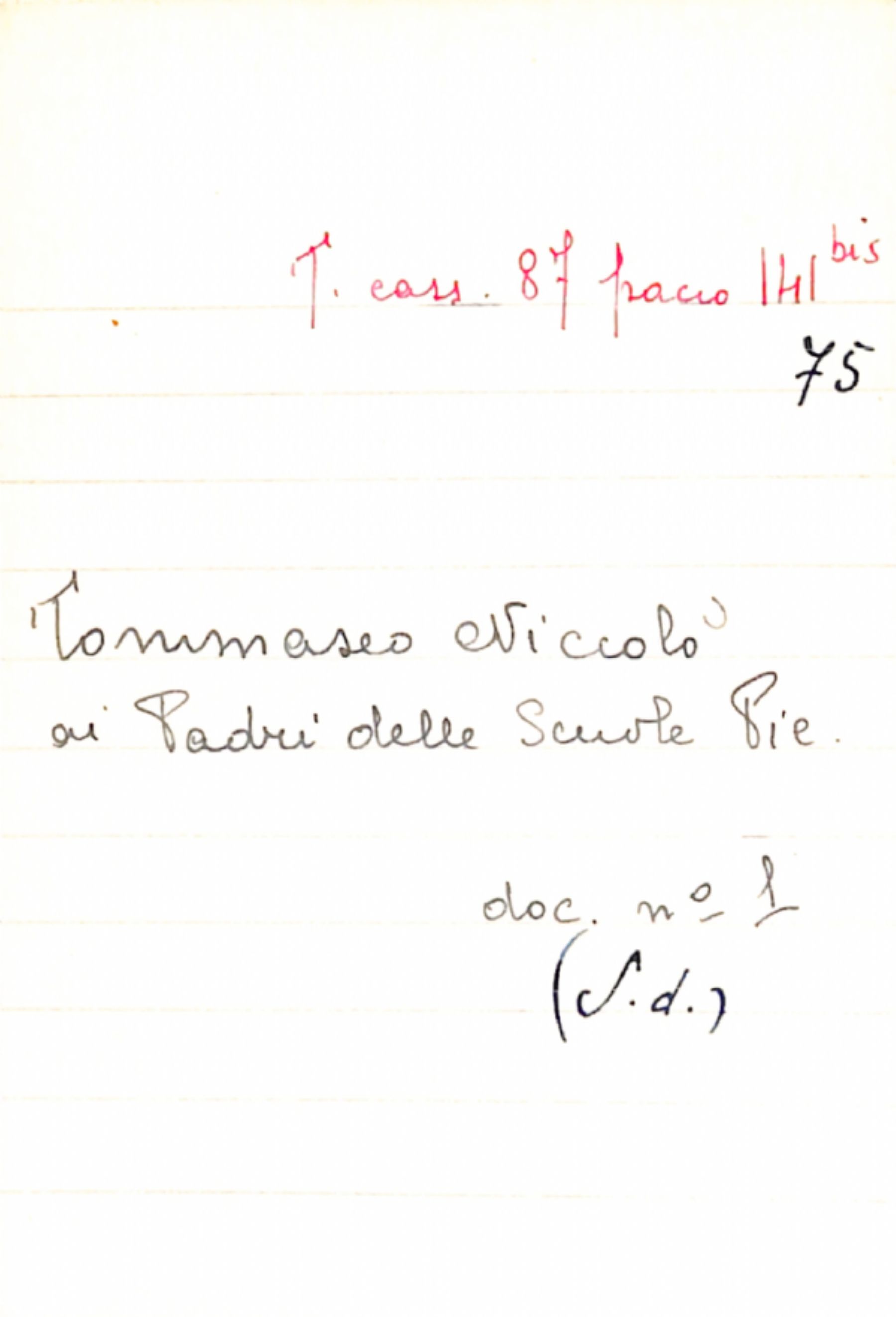 Fascicolo Tommaseo, Niccolò a Padri delle Scuole Pie