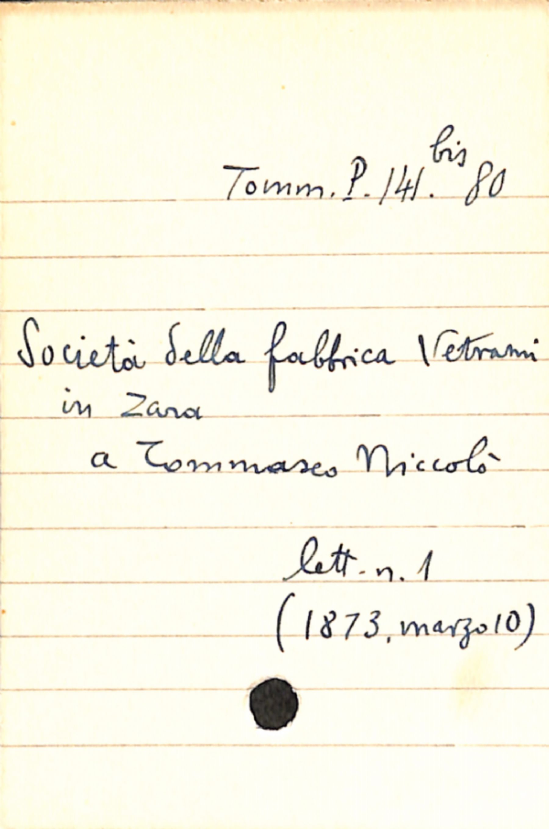 • Società della fabbrica Vetrami in Zara a Tommaseo, Niccolò