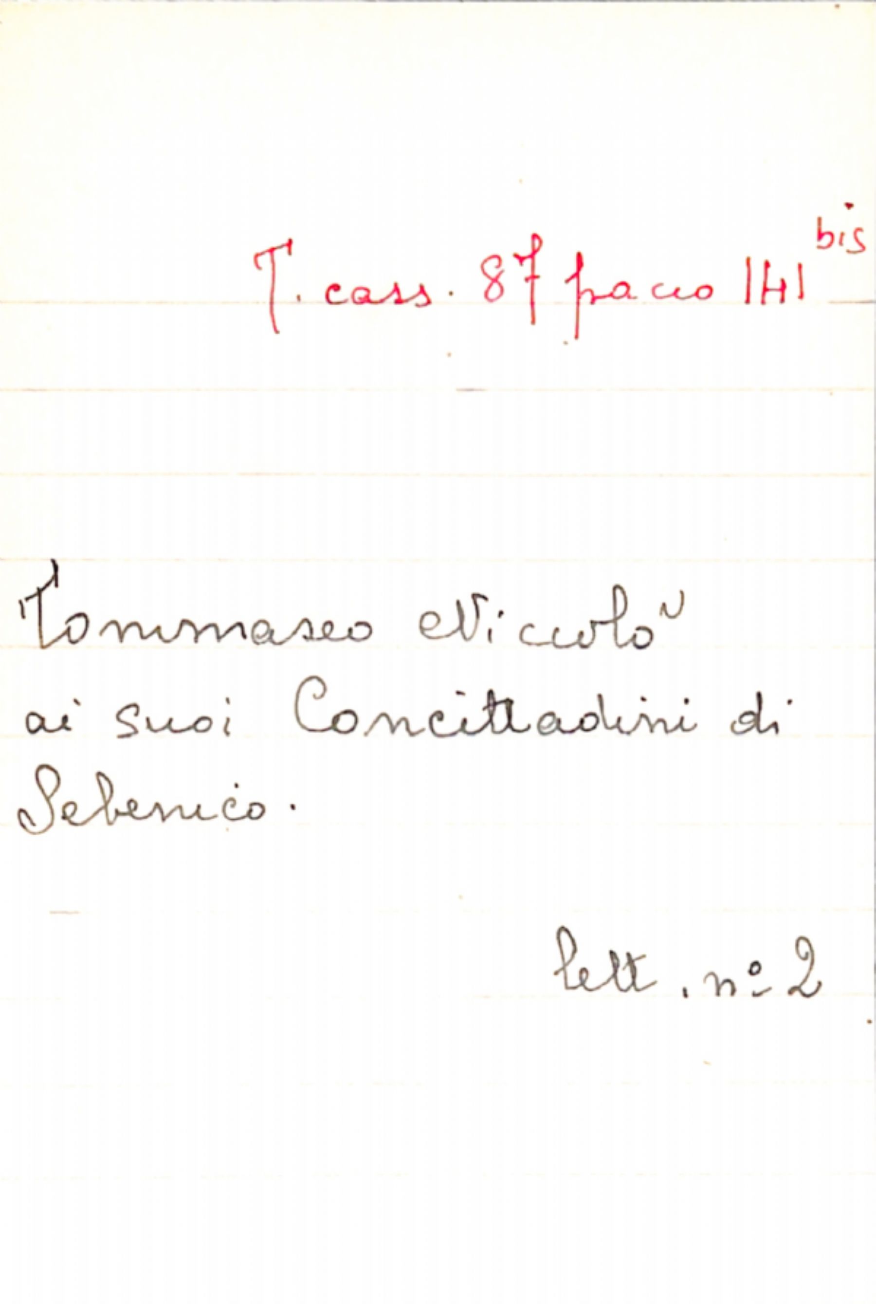 Fascicolo Tommaseo, Niccolò a Concittadini di Sebenico