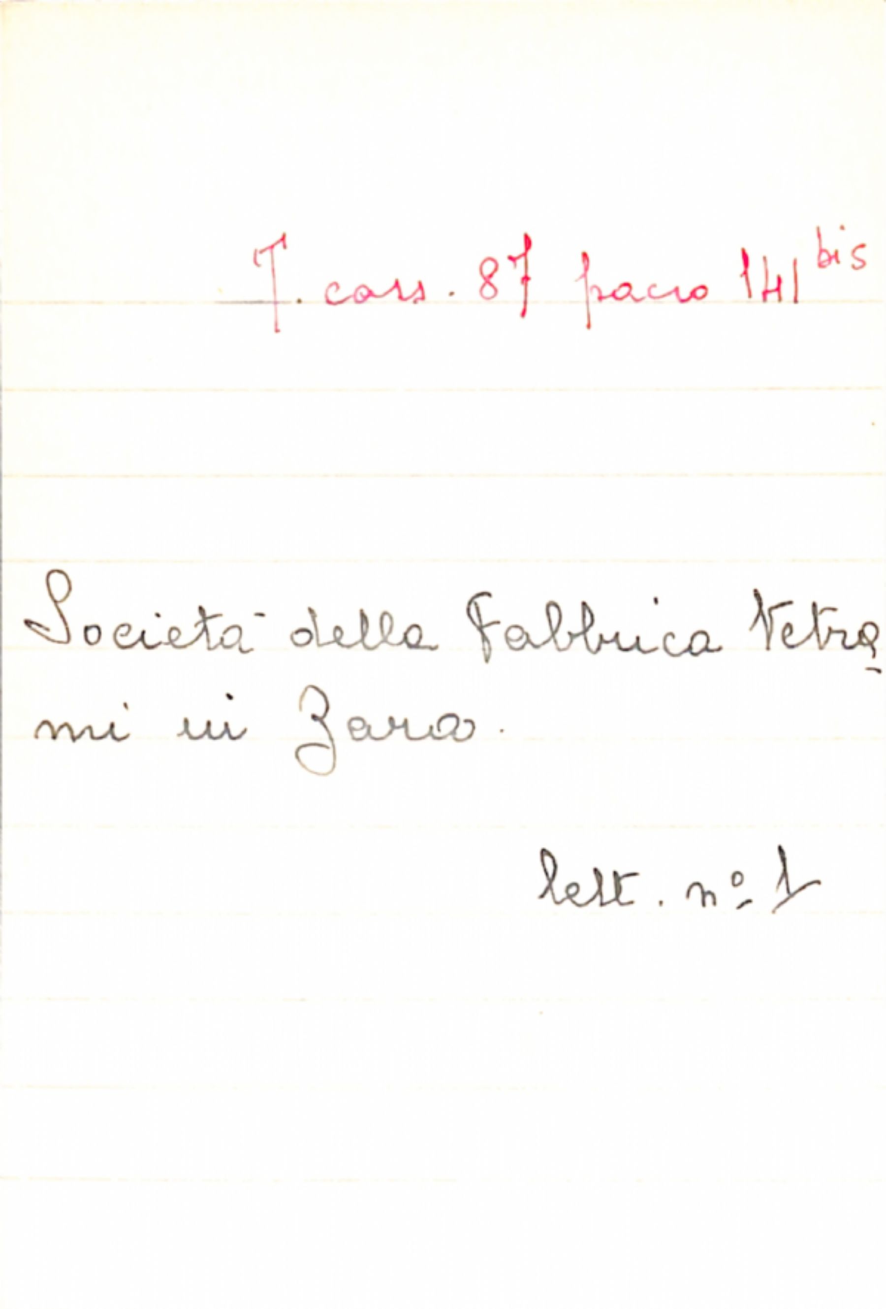 • Società della Fabbrica Vetrami in Zara a [senza destinatario]