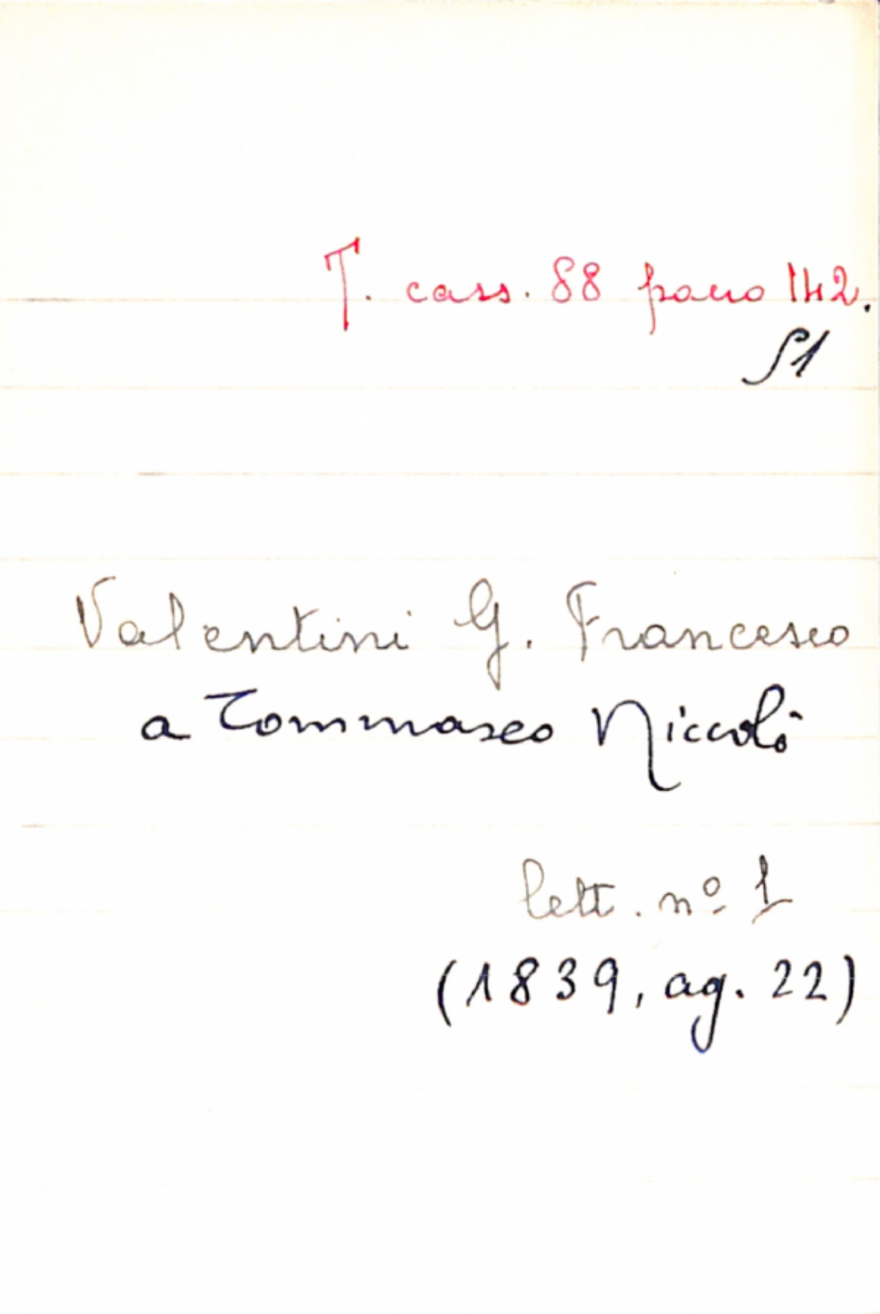 Fascicolo Valentini, G. Francesco a Tommaseo, Niccolò