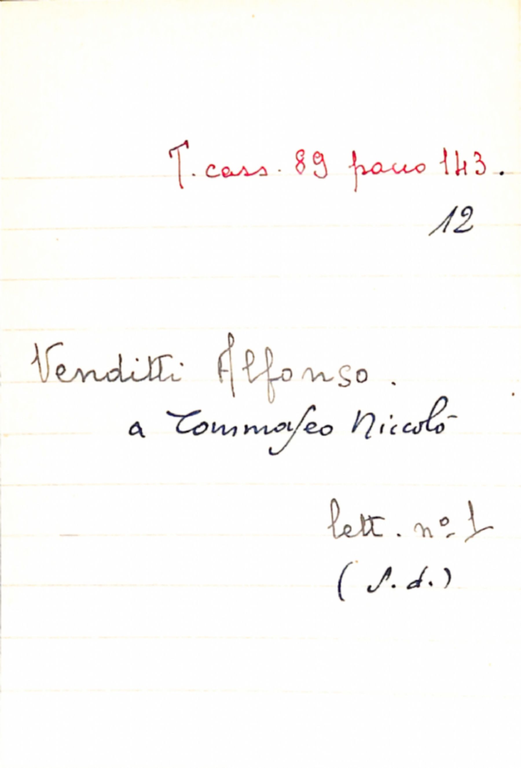 Fascicolo Venditti, Alfonso a Tommaseo, Niccolò