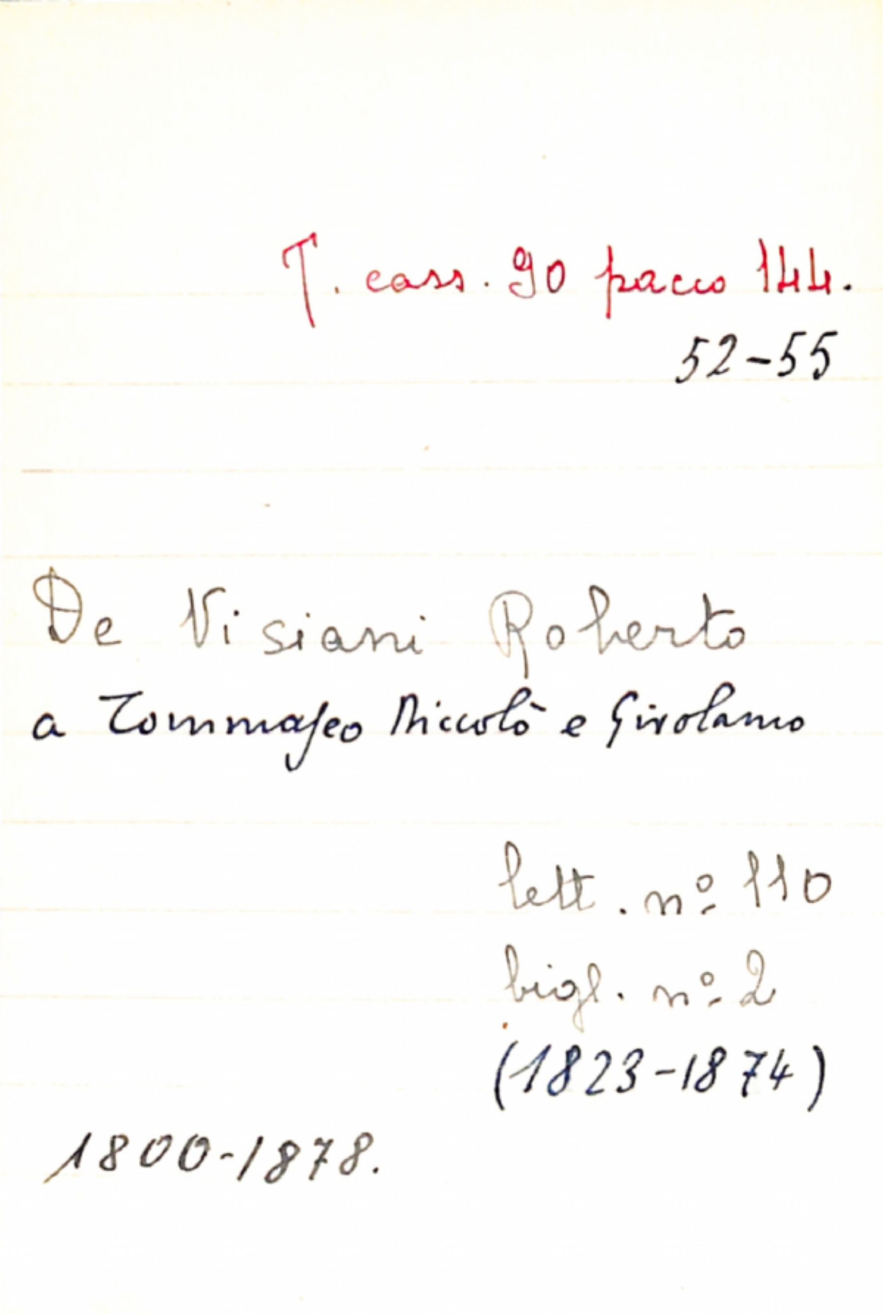 Fascicolo De Visiani, Roberto a Tommaseo, Niccolò; Tommaseo, Girolamo