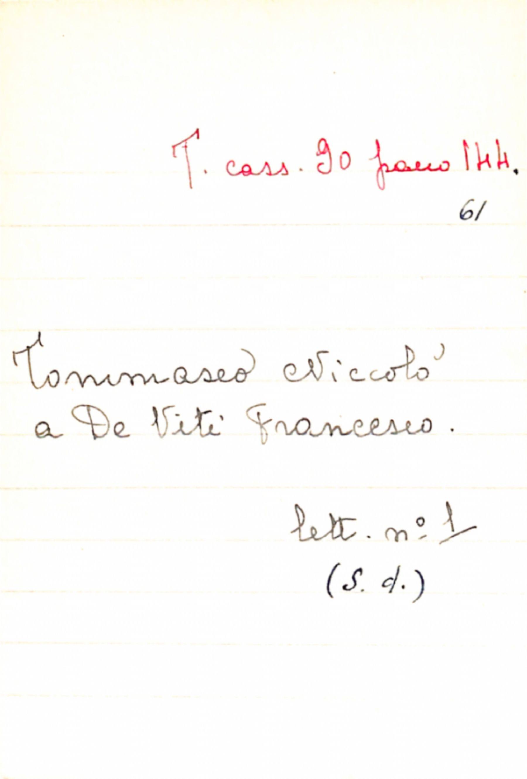 Fascicolo Tommaseo, Niccolò a De Viti, Francesco