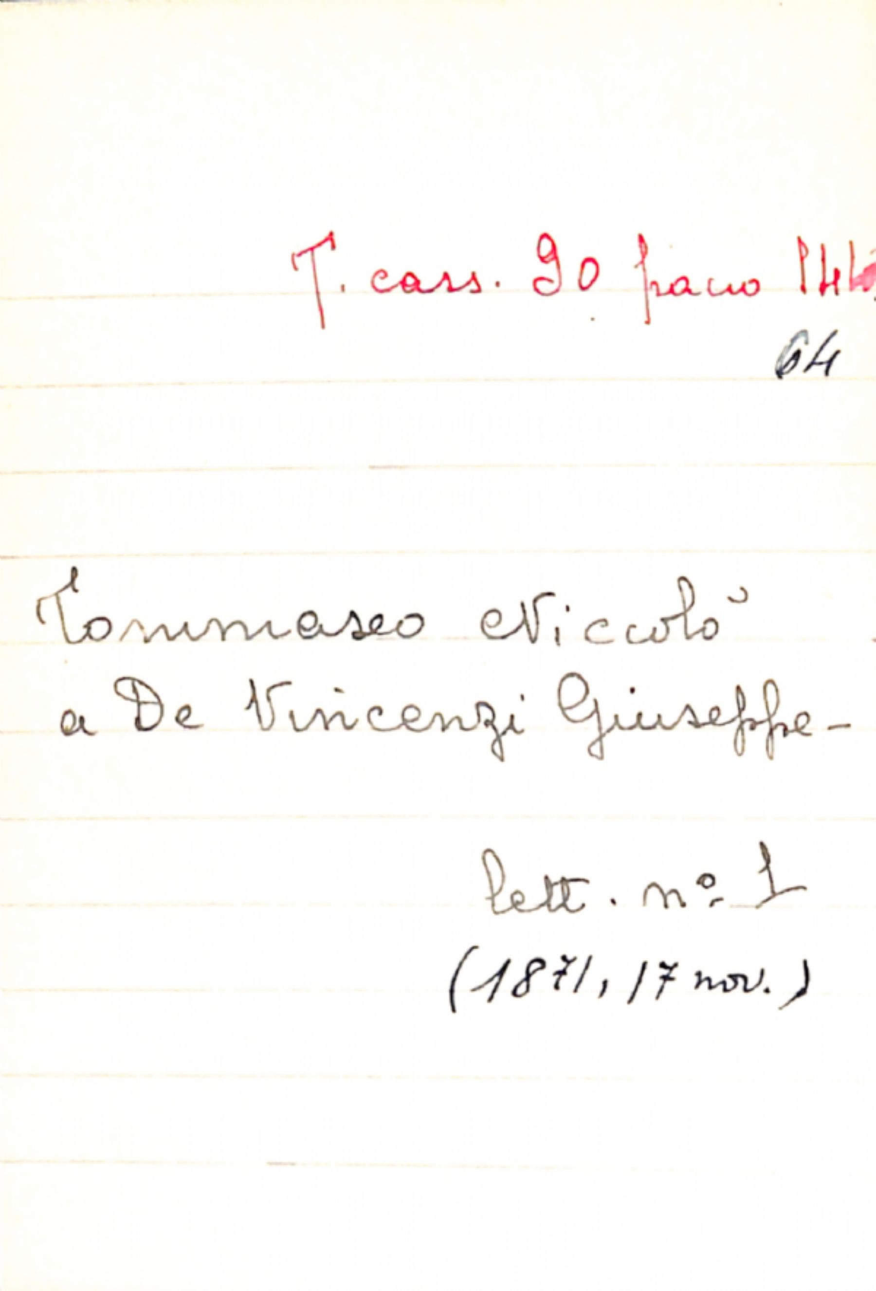 Fascicolo Tommaseo, Niccolò a De Vincenzi, Giuseppe