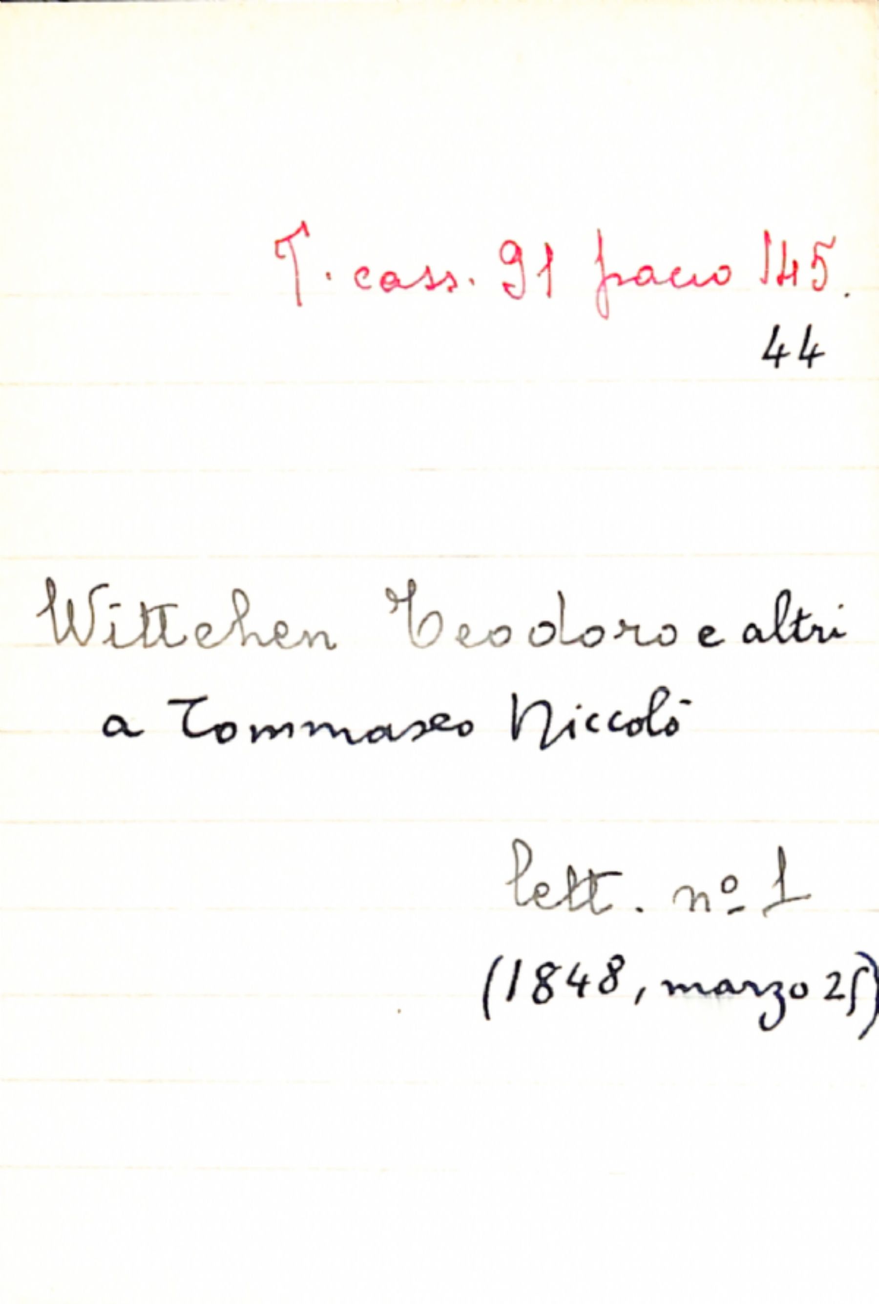 Fascicolo Wittchen, Teodoro; altri a Tommaseo, Niccolò