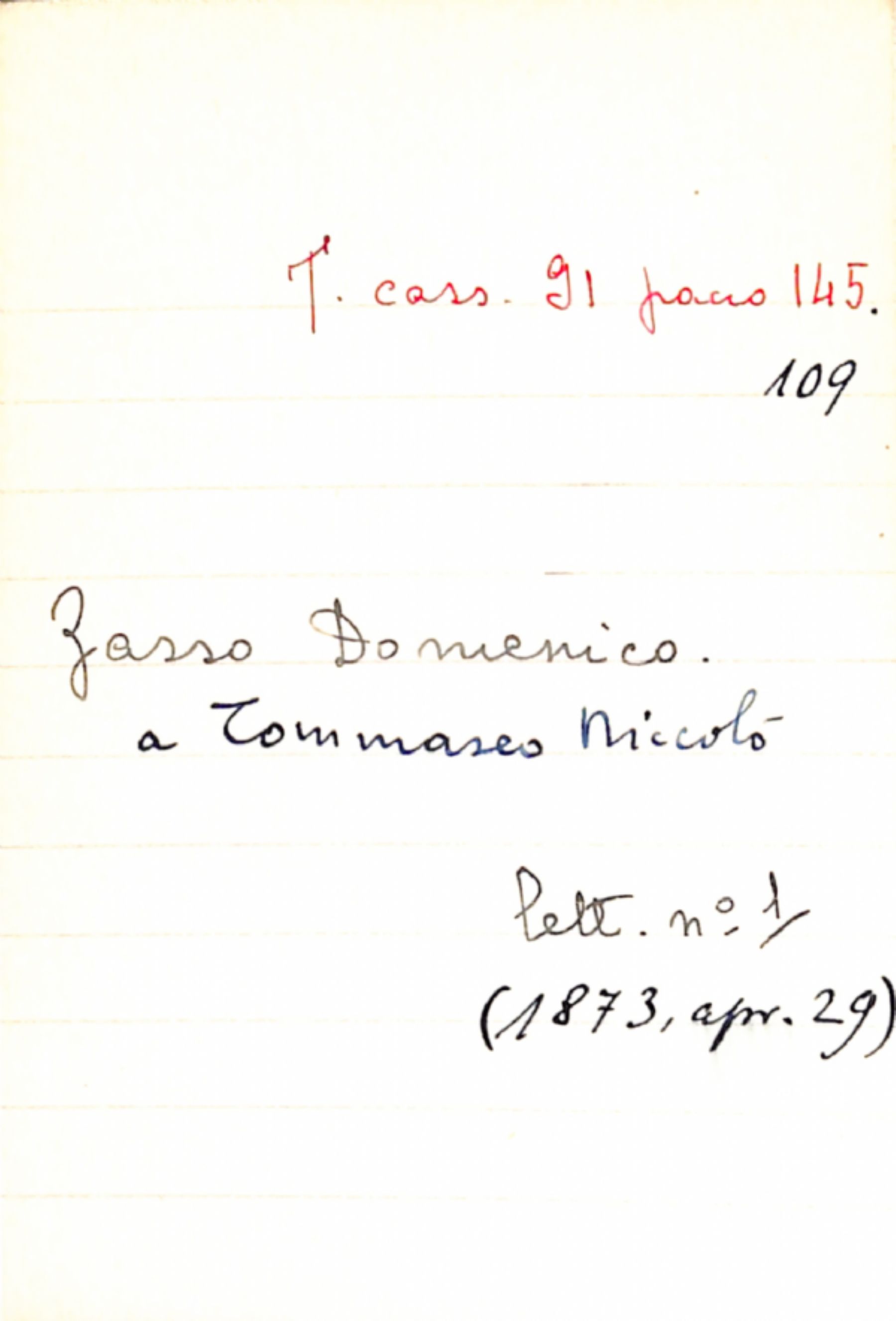 Fascicolo Zasso, Domenico a Tommaseo, Niccolò