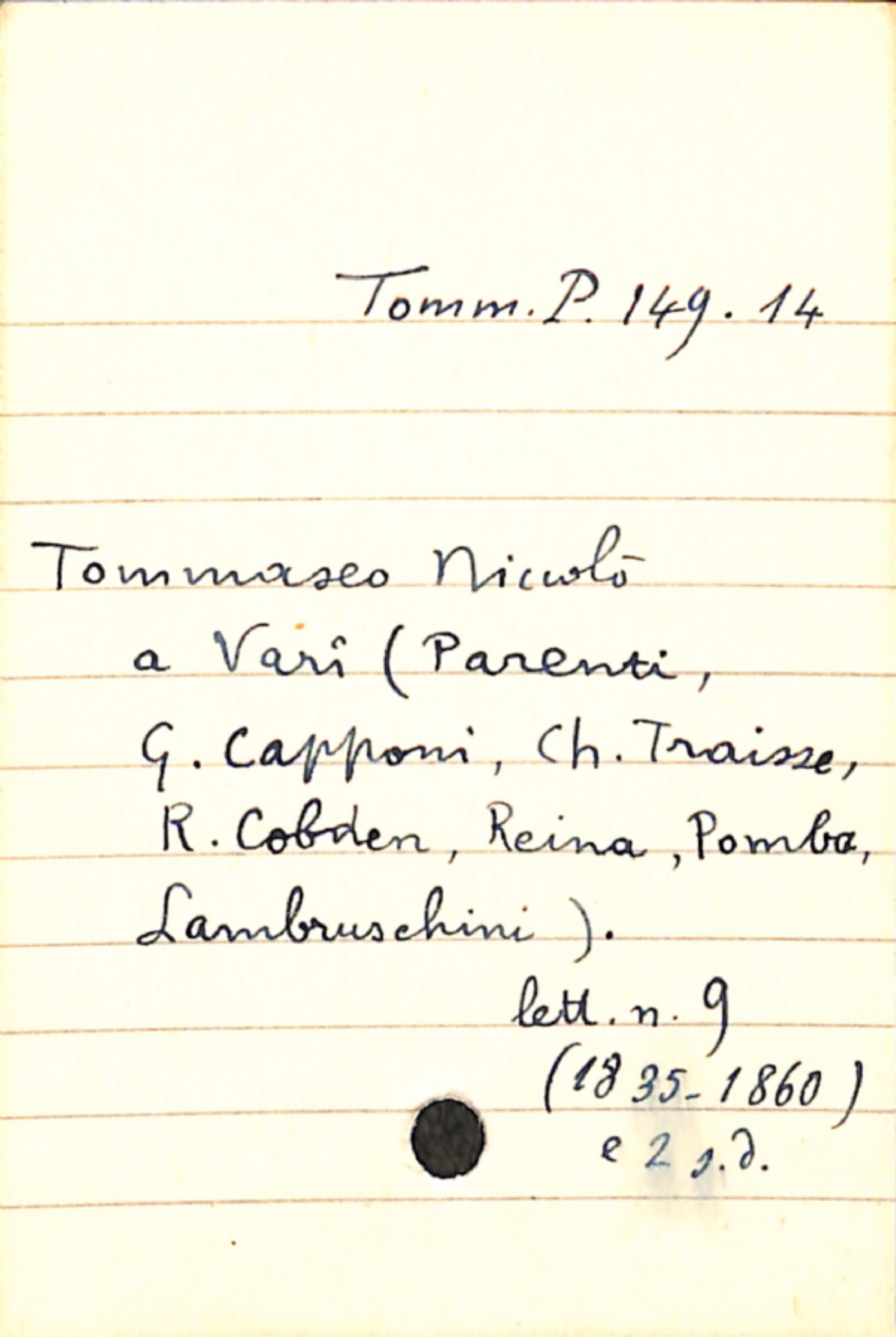 Fascicolo Tommaseo, Niccolò a Vari (Pareti; Capponi, G.; Traisse, Ch.; Cobden, R.; Reina; Pomba; Lambruschini)