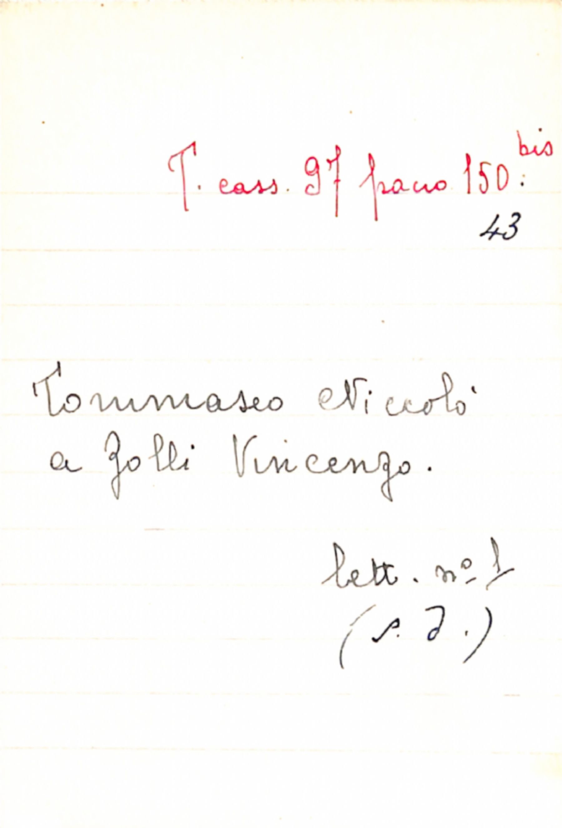 Fascicolo Tommaseo, Niccolò a Zolli, Vincenzo