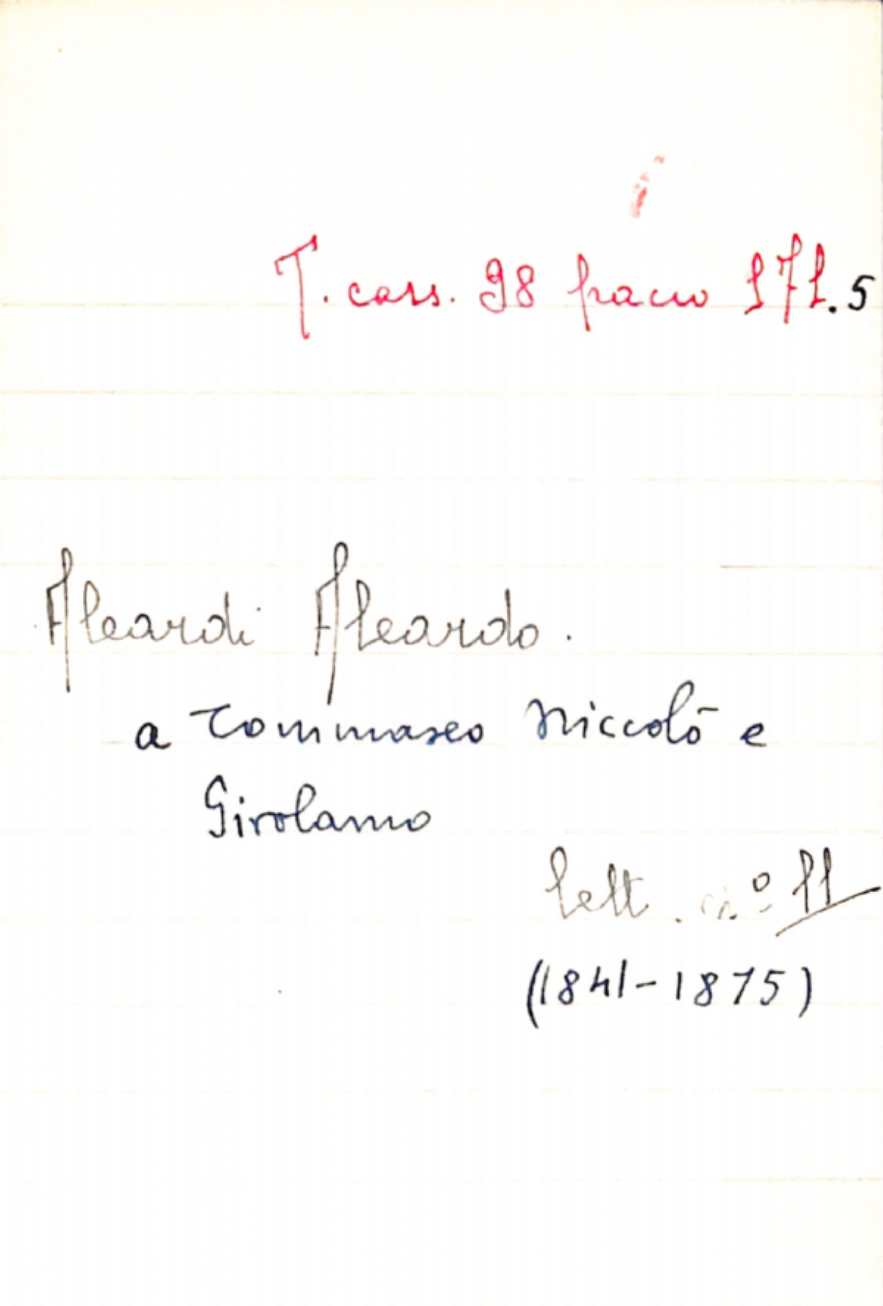 Fascicolo Aleardi, Aleardo a Tommaseo, Niccolò; Tommaseo, Girolamo