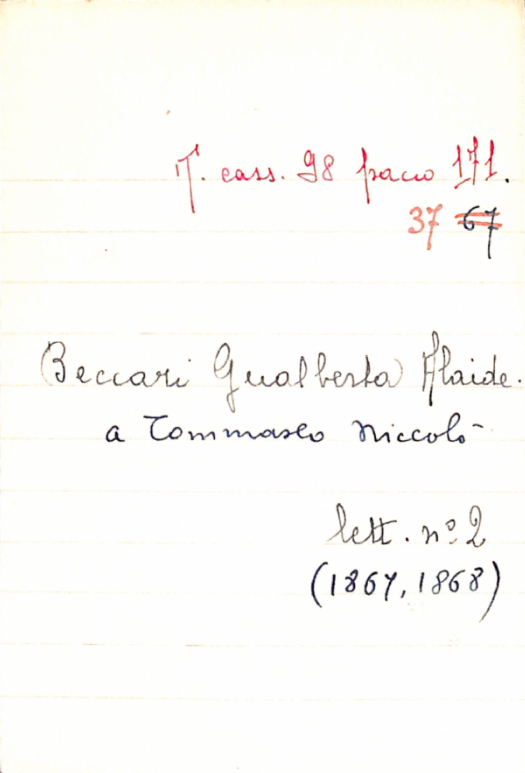 Fascicolo Beccari, Gualberta Alaide a Tommaseo, Niccolò